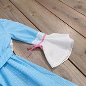 袖のピンクのリボンも、胸元のお花の刺繍も素敵ですよね。