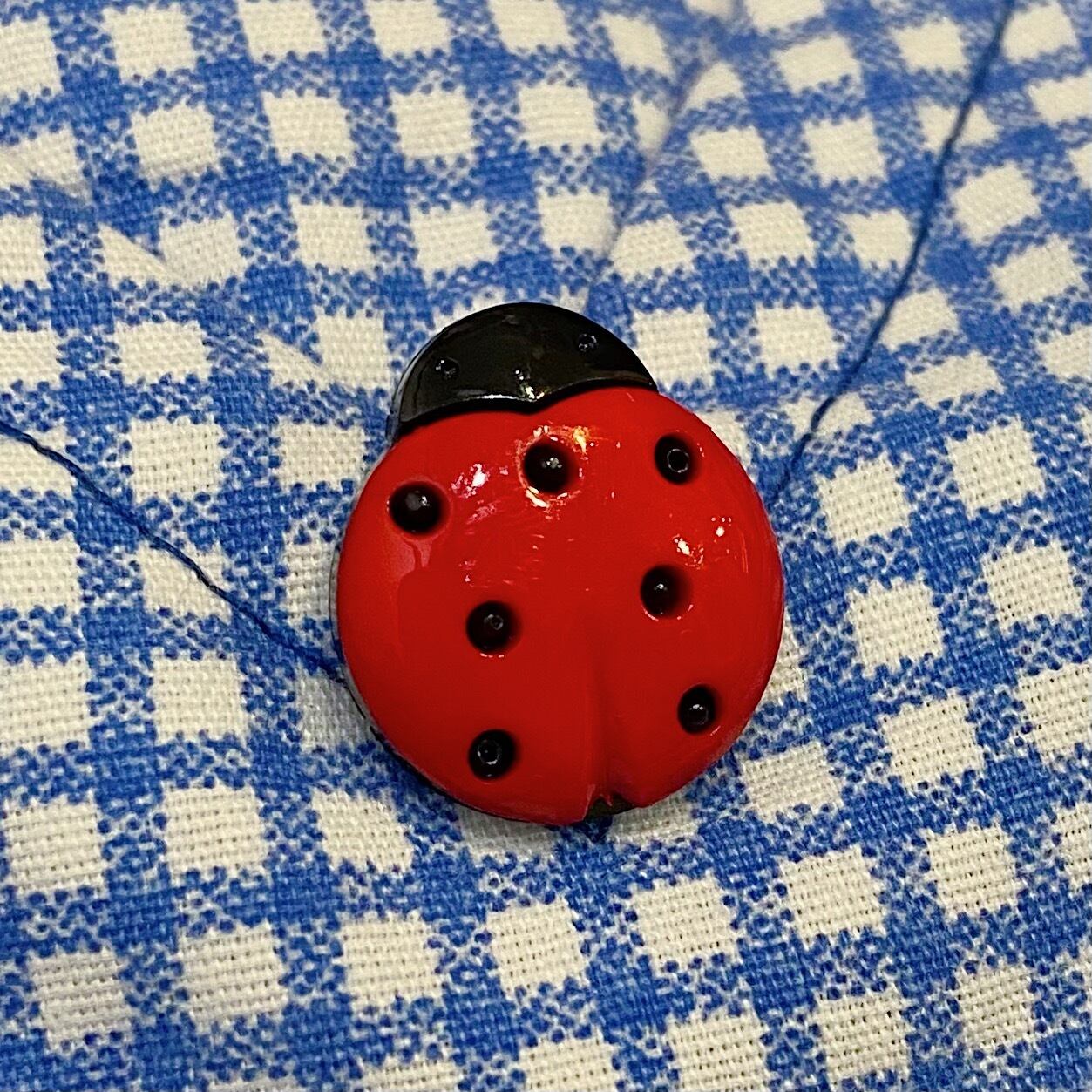 てんとう虫のボタンが可愛い水色チェックのトップス!