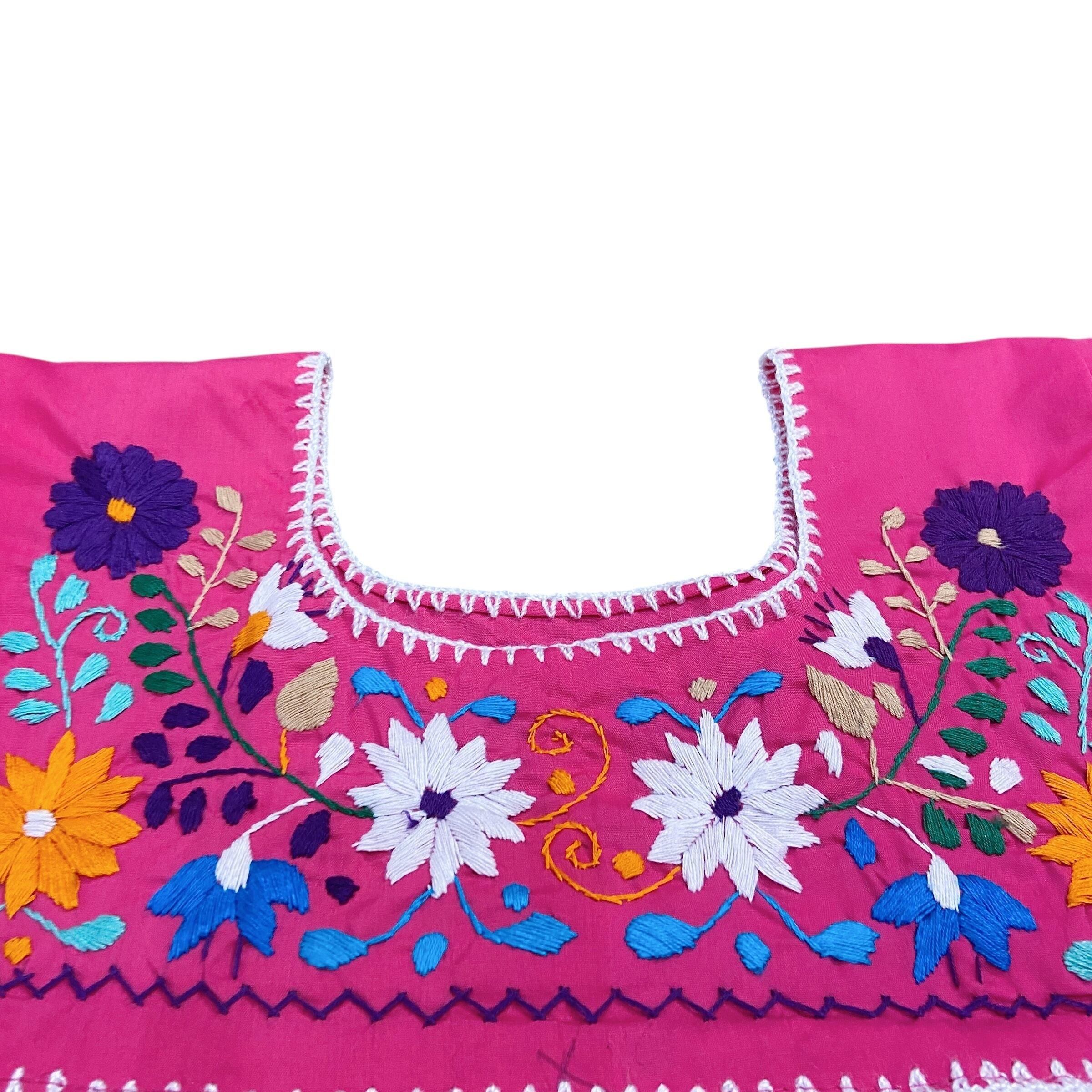 【size100-110】70s Pink Mexican flower embroidery dress(k106)