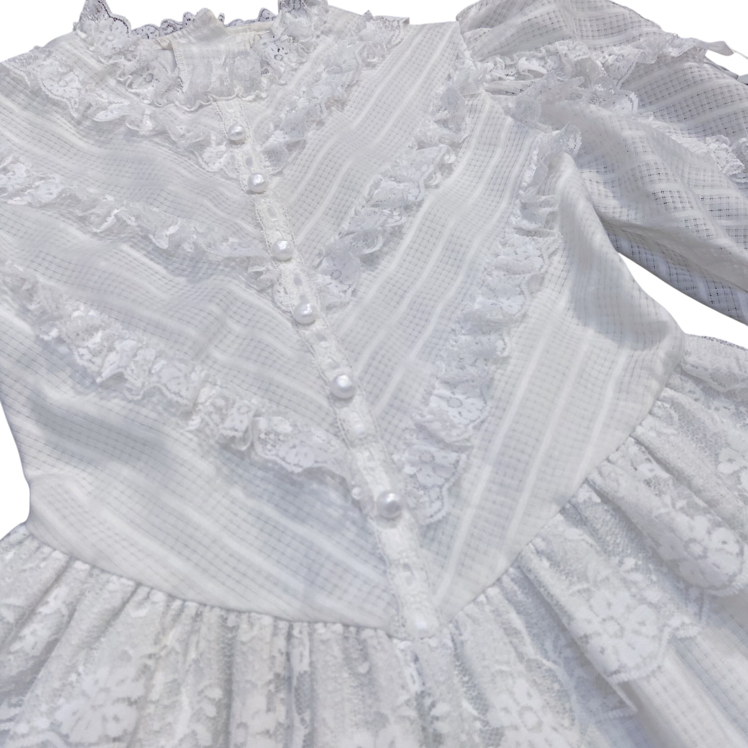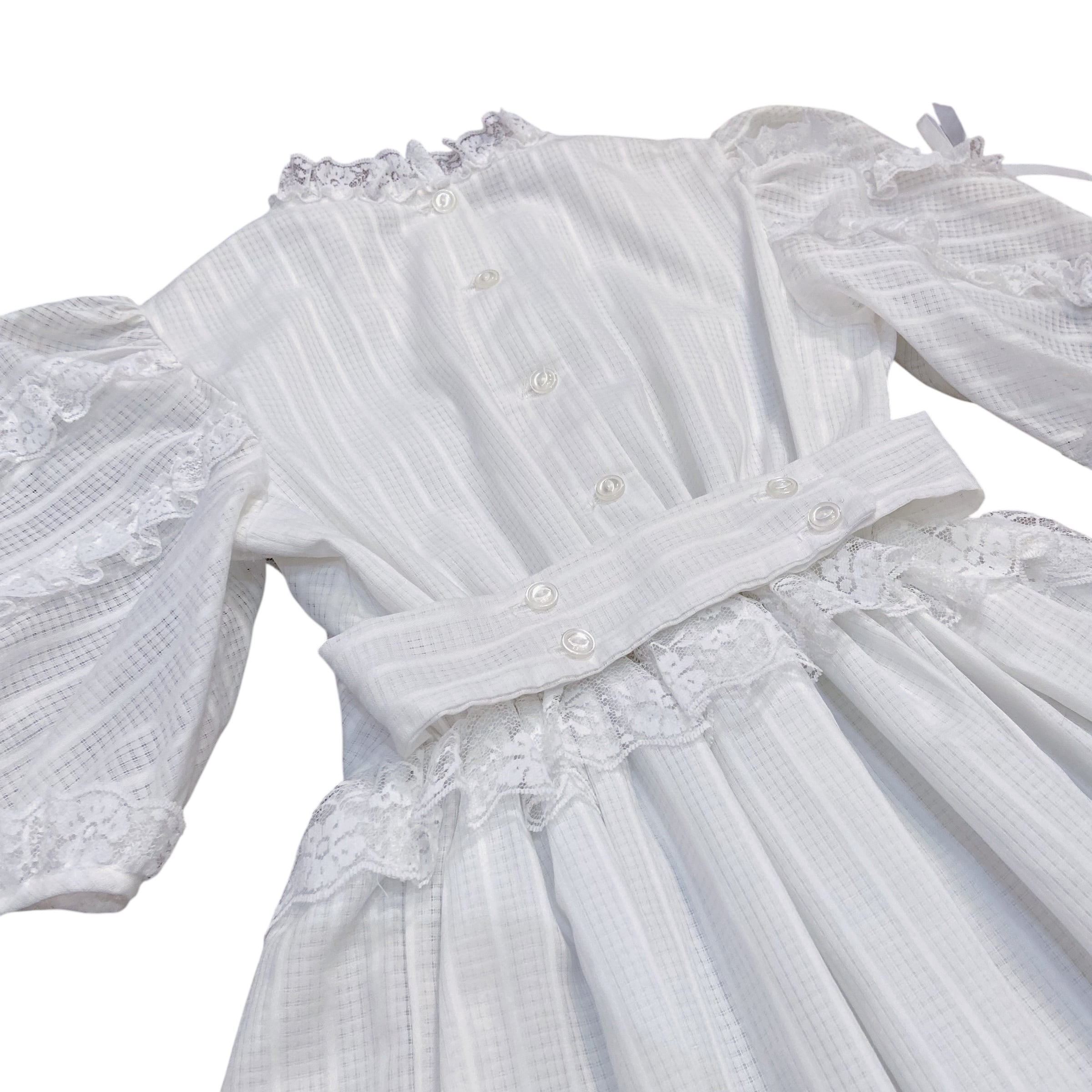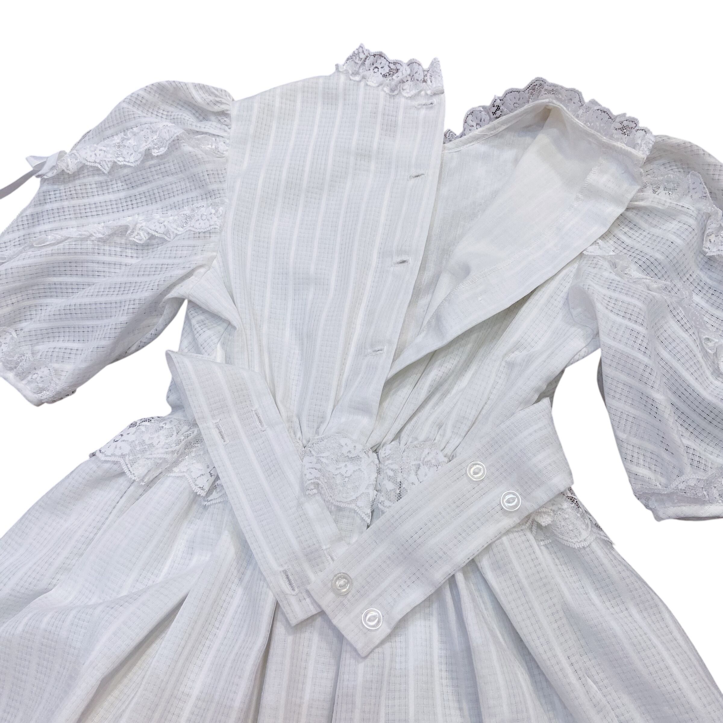 【size110-120】70-80s White race ribbon Perl dress(k243)
