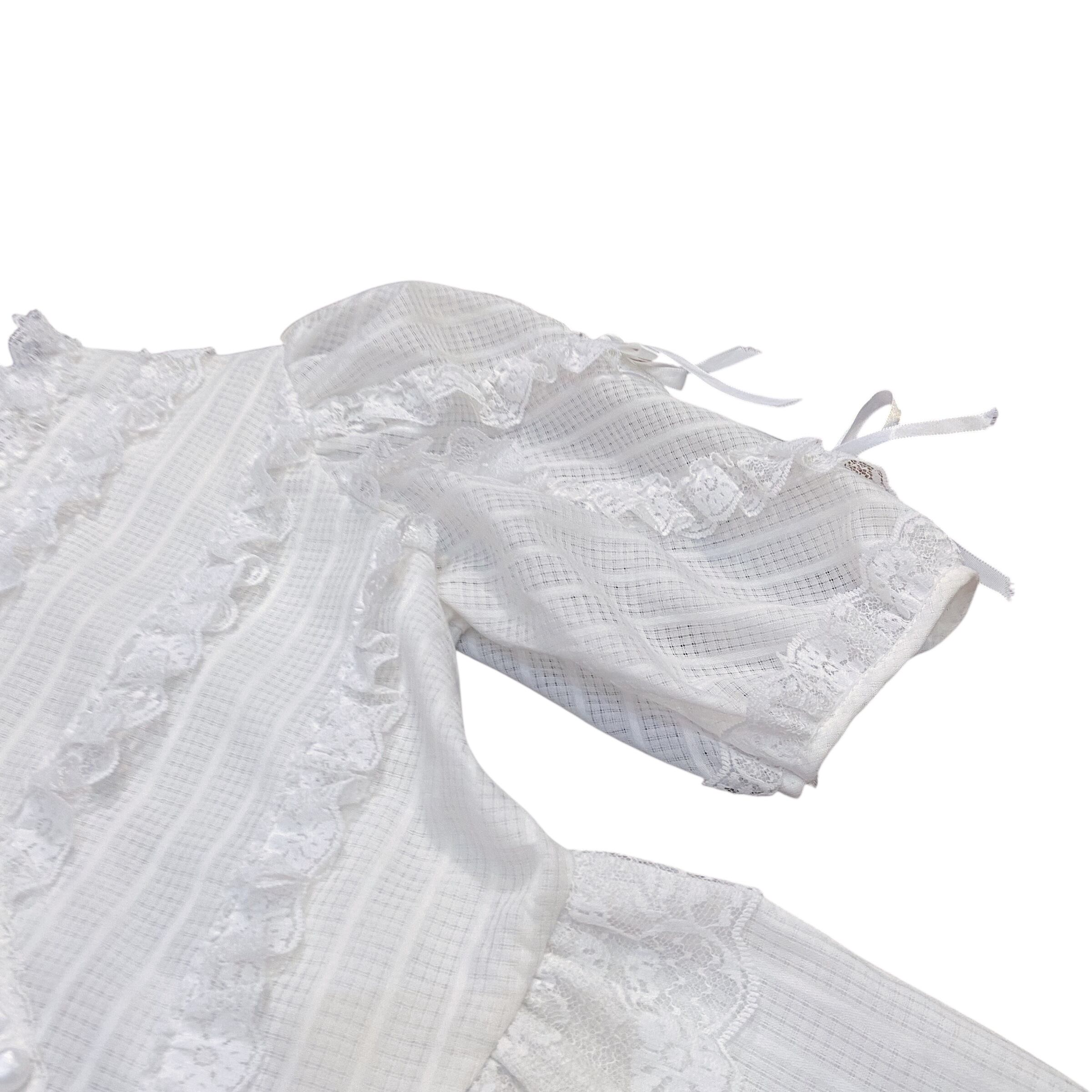 70〜80年代の、素敵なパールのボタンや猫目ボタンそしてレースがたっぷり使われていてたまらない一枚。