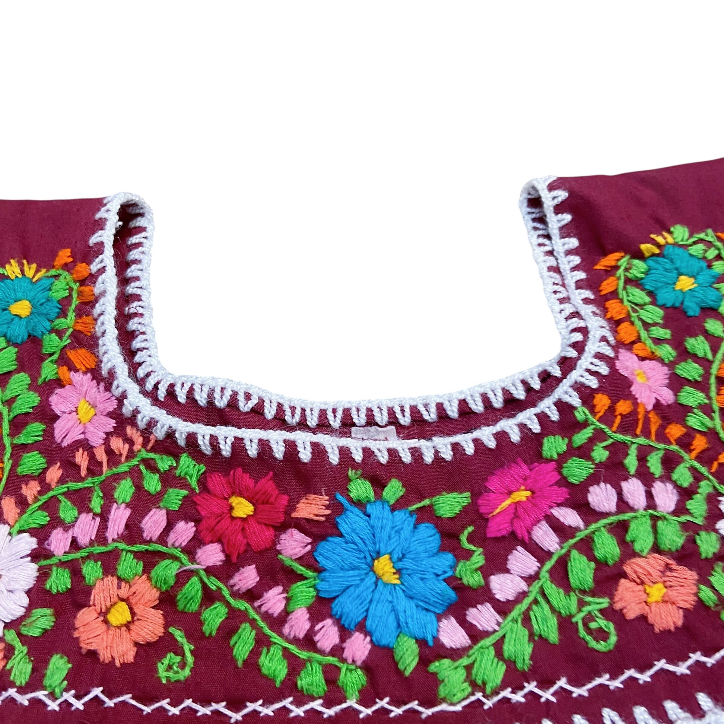 【size100-110】70s wine Red Mexican flower embroidery dress