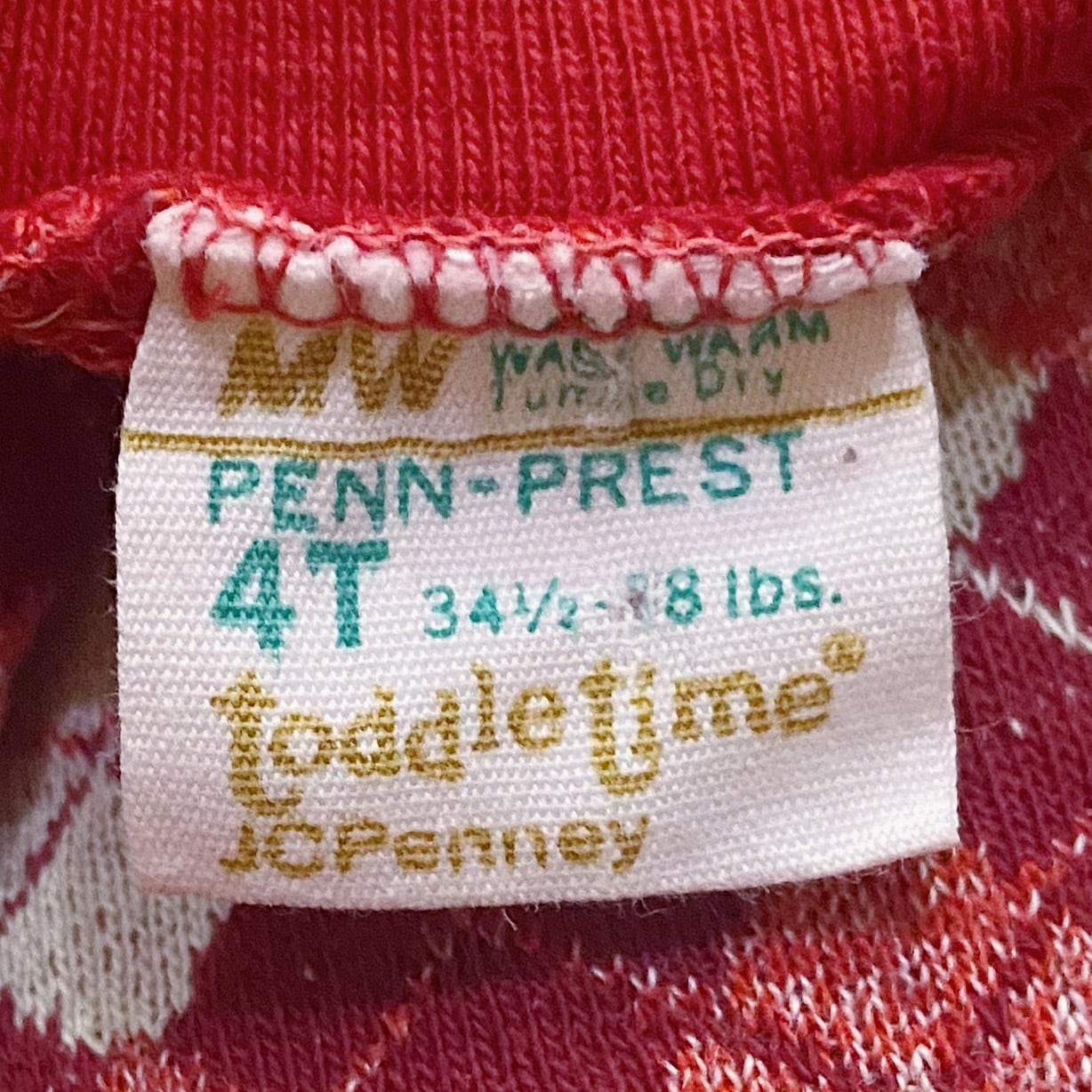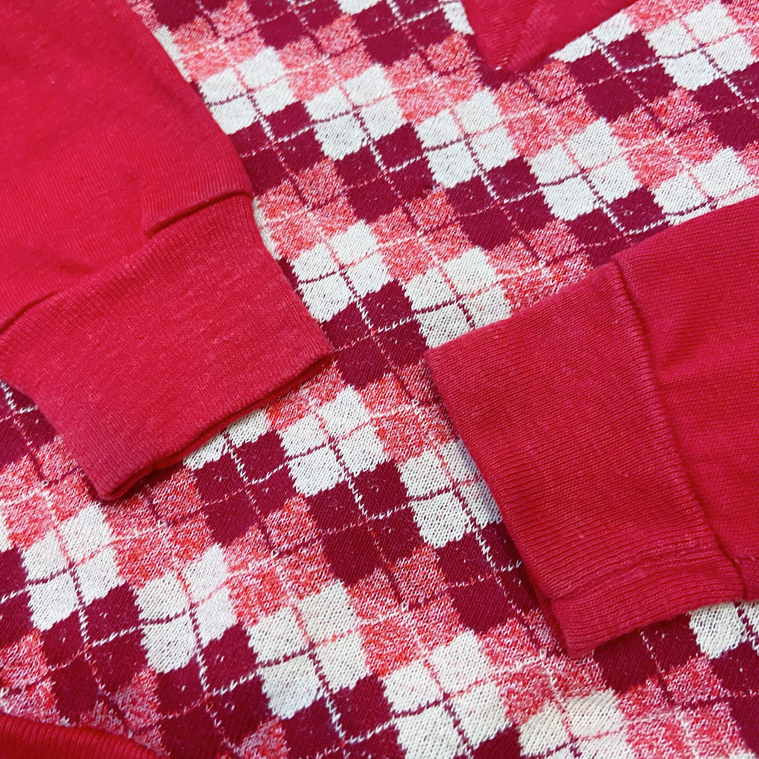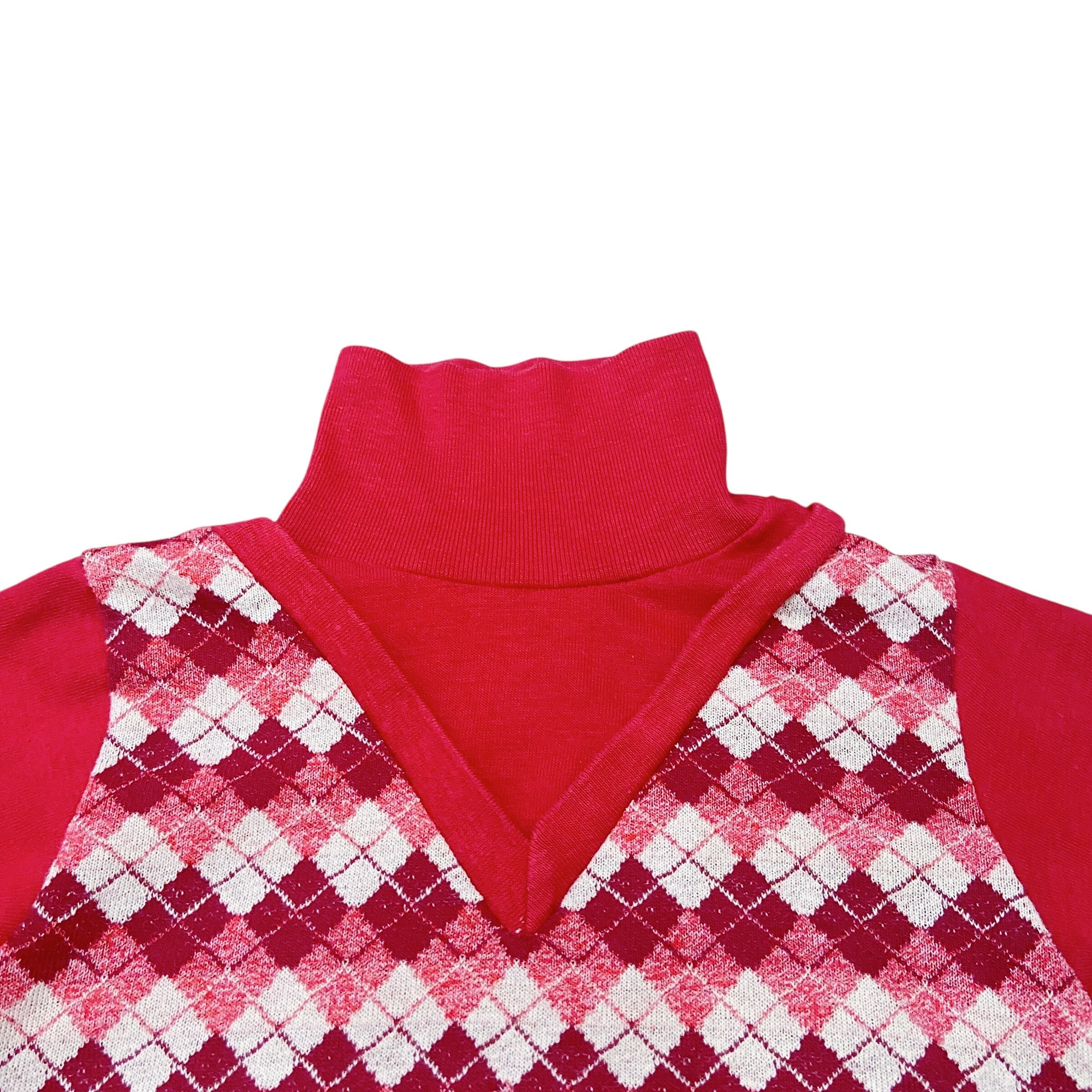 【size70-80】60-70s Red plaid high neck long sieeve tops(k232)
