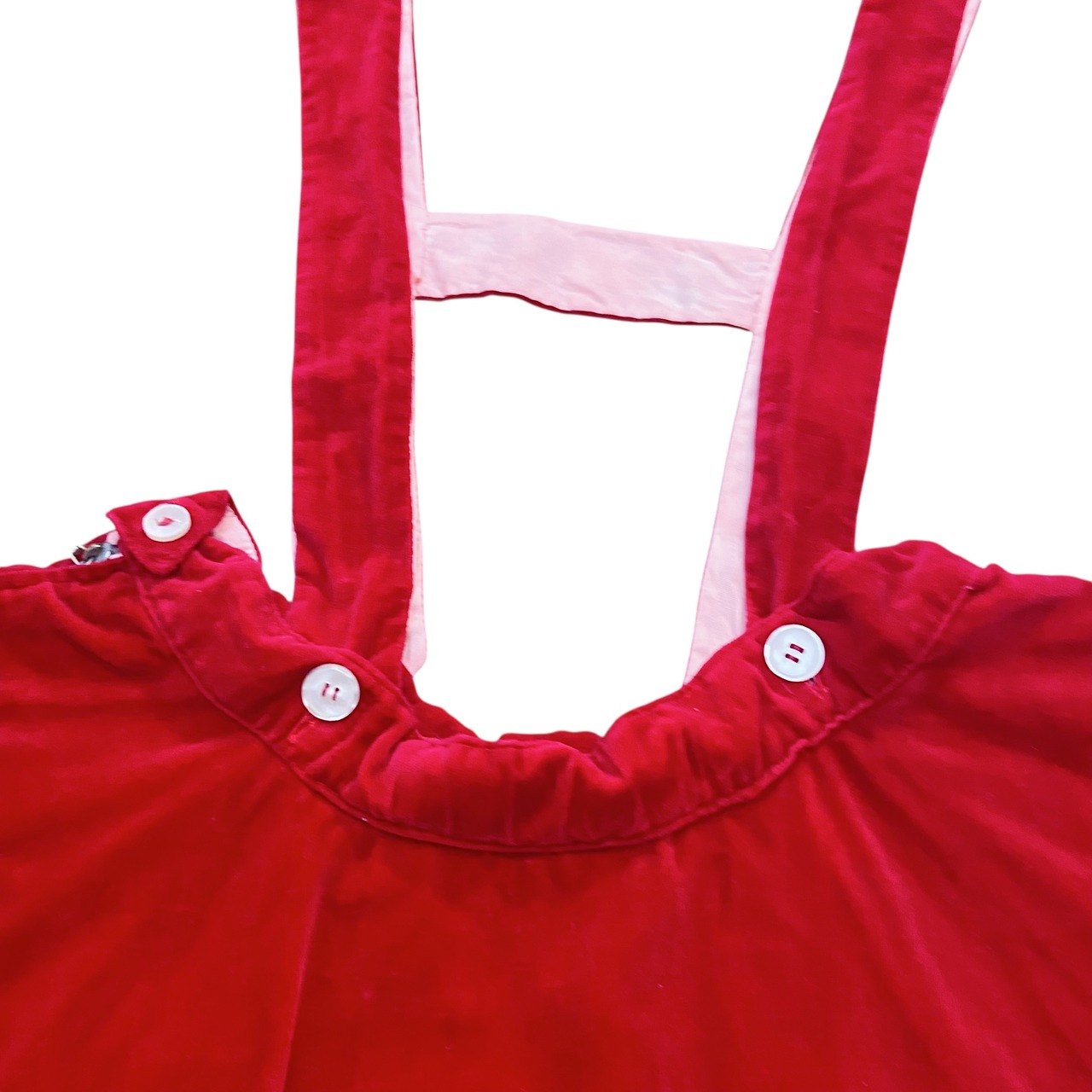 【size120-130】60-70s Switzerland Red flower embroidery suspender skirt (k237)