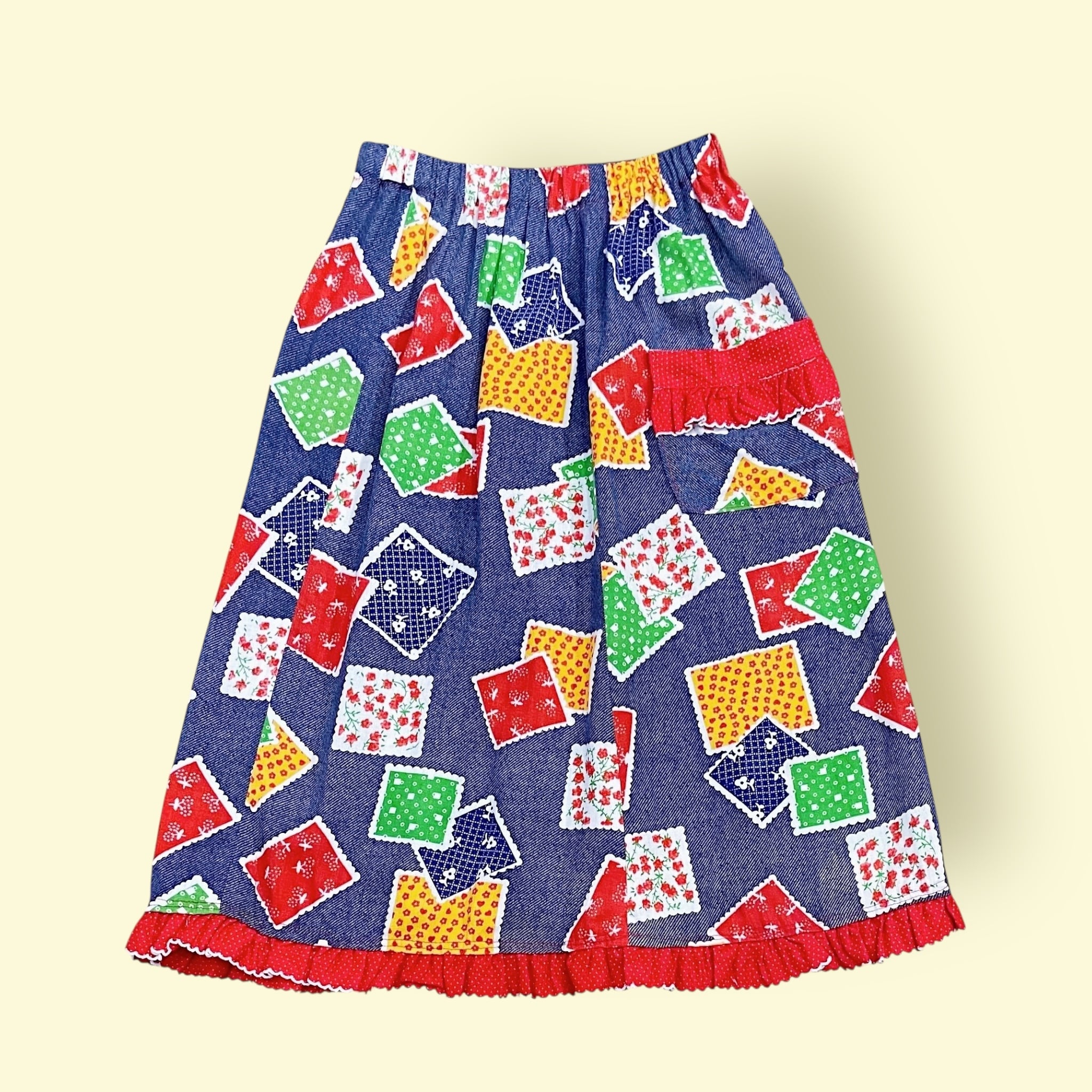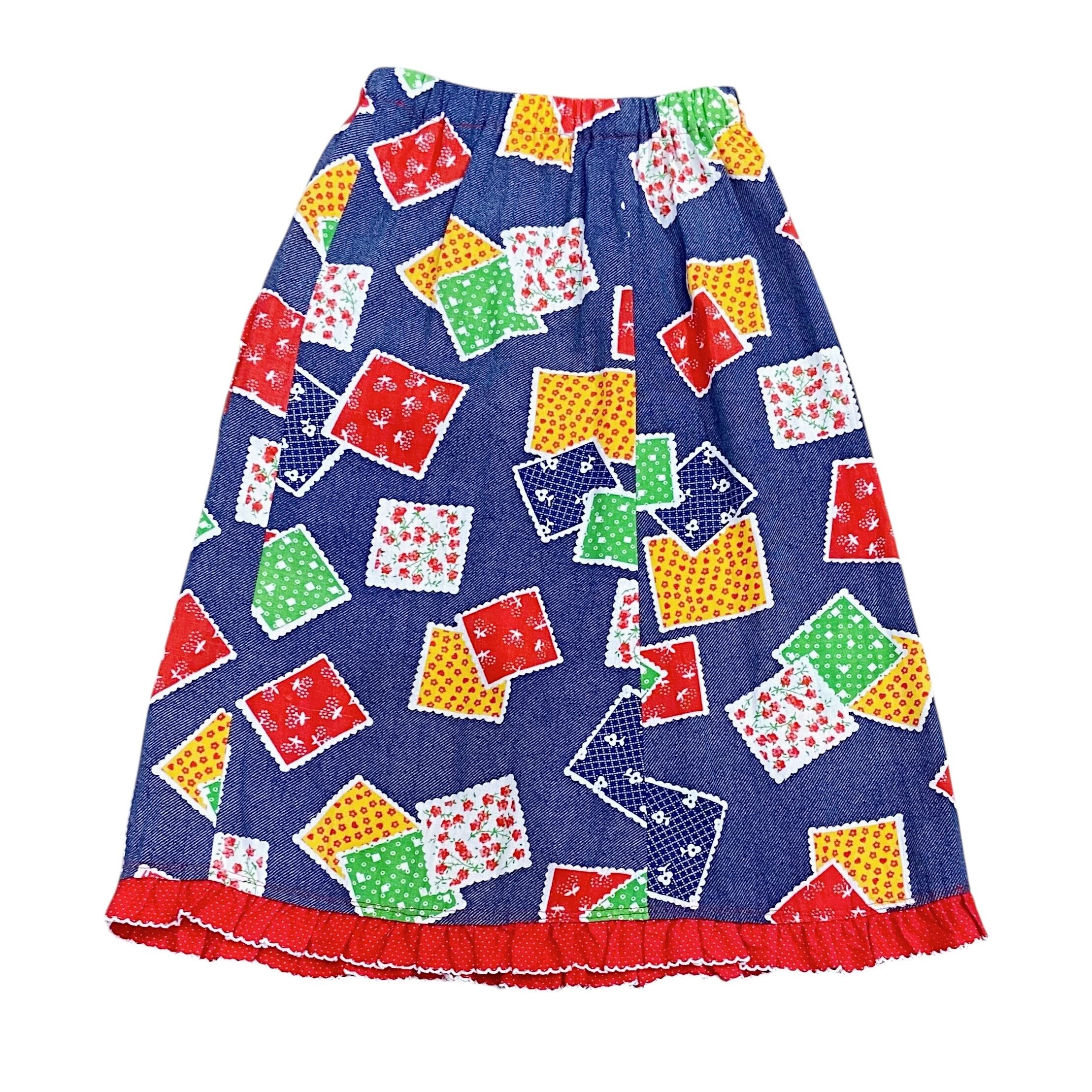 【size130-150】70-80s patchwork print rocket skirt(k223)