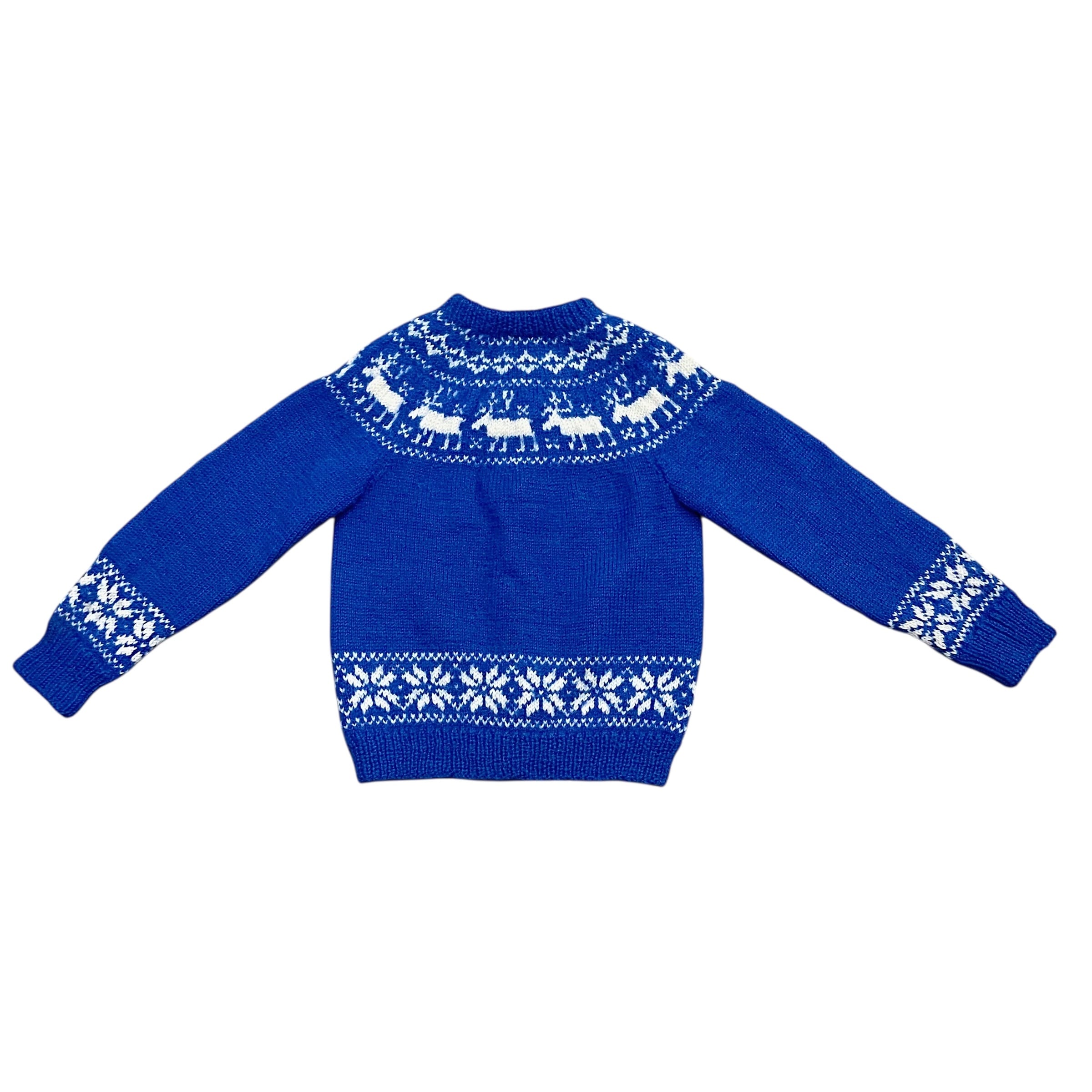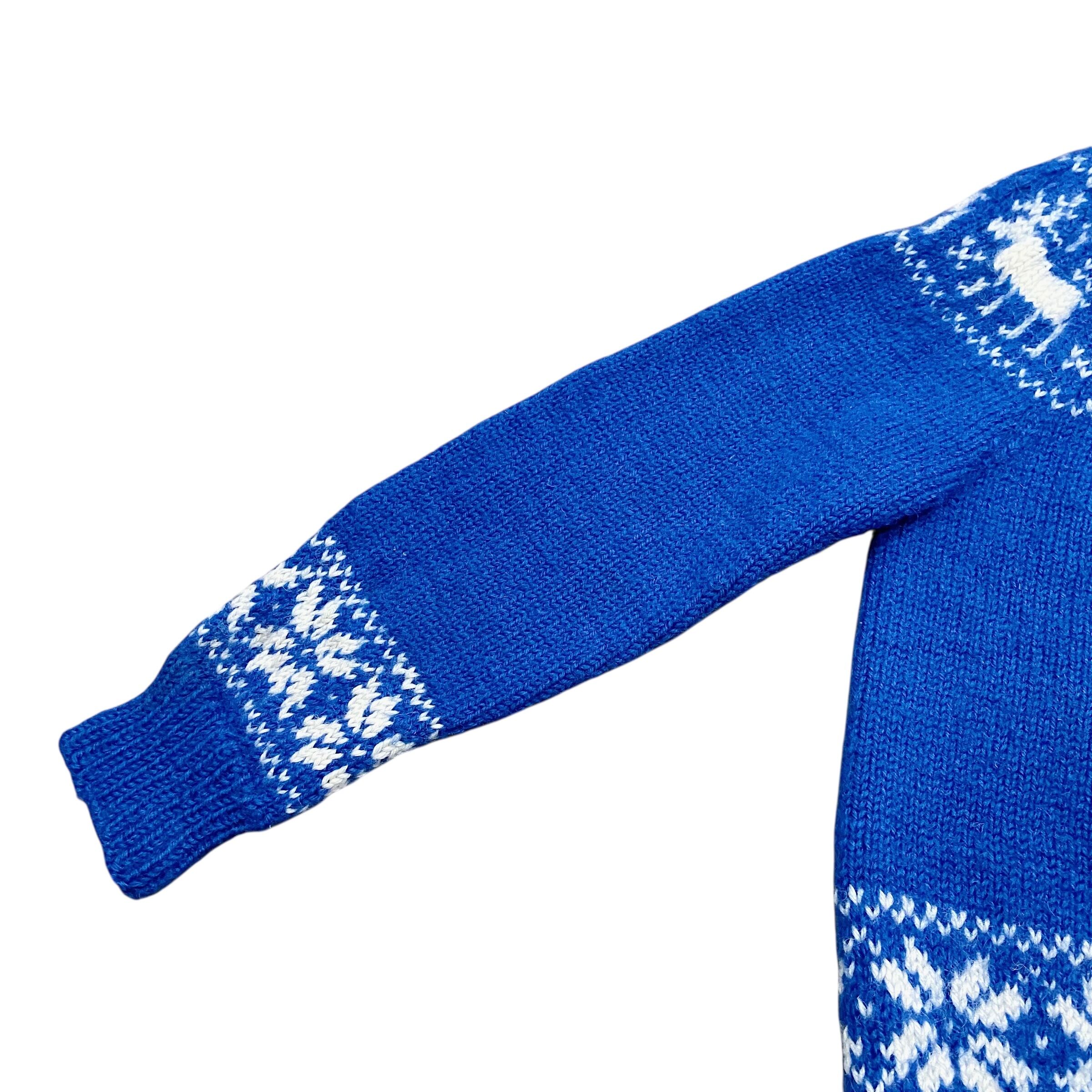 【size120】60-70s blue Nordic sweater knit tops(k196)