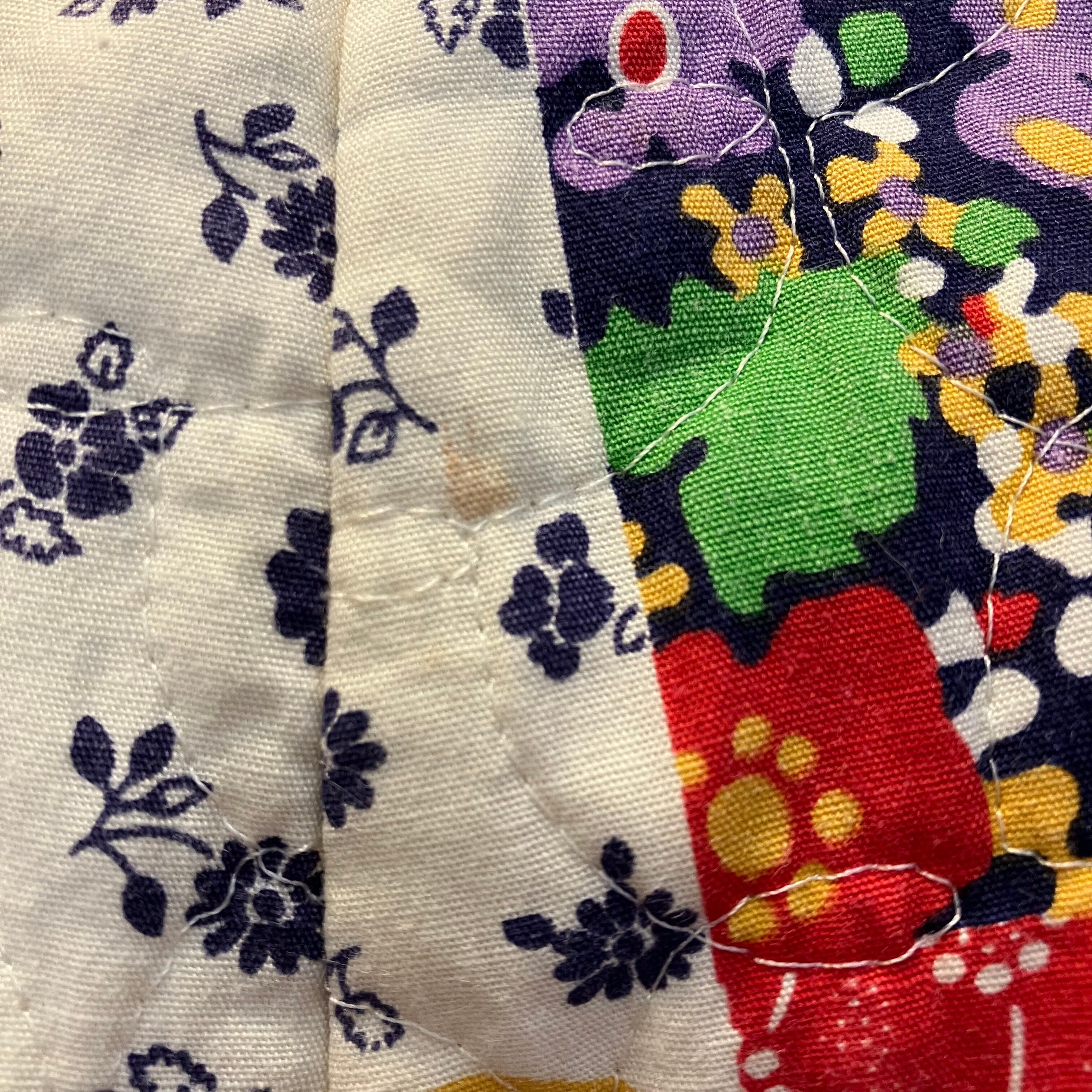 パッチワークプリントに中綿キルティングの豪華な一枚。