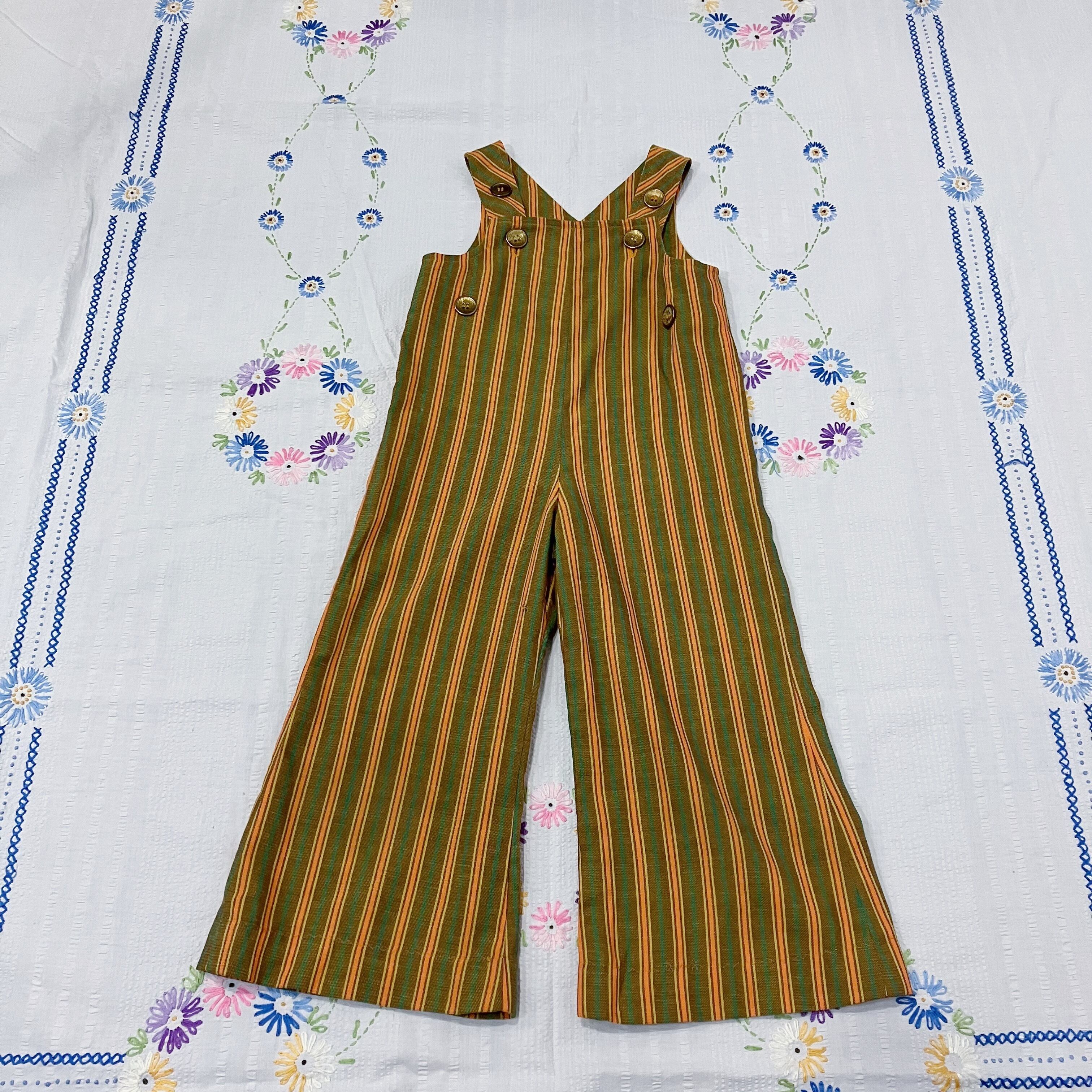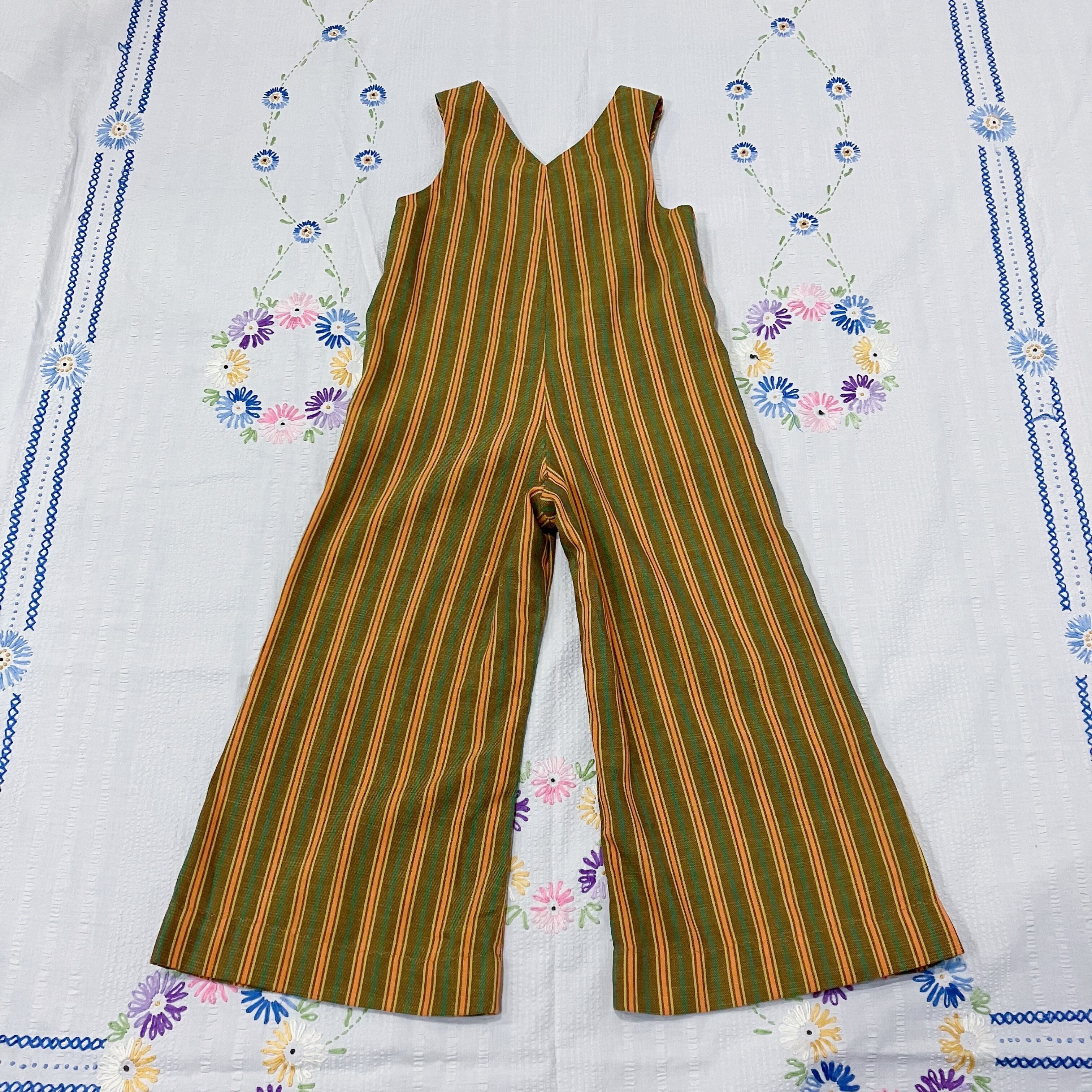 【size100〜110】60s yellow and brown cotton stripe jump suits
