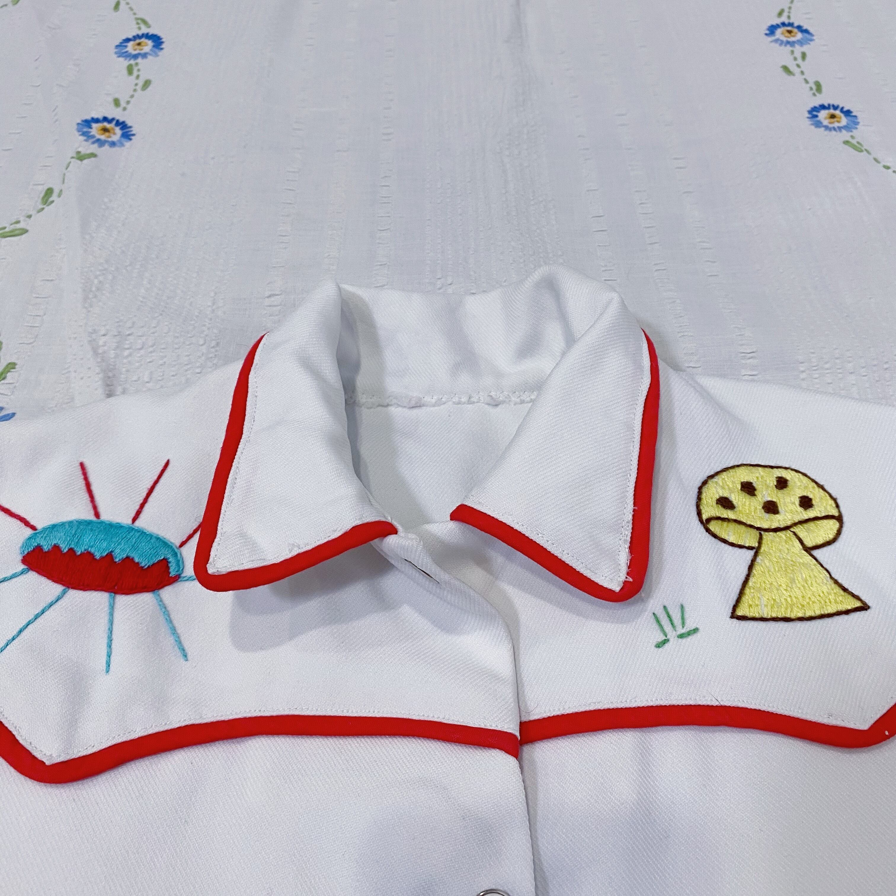 【130〜135】70s white mushroom embroidery shirt