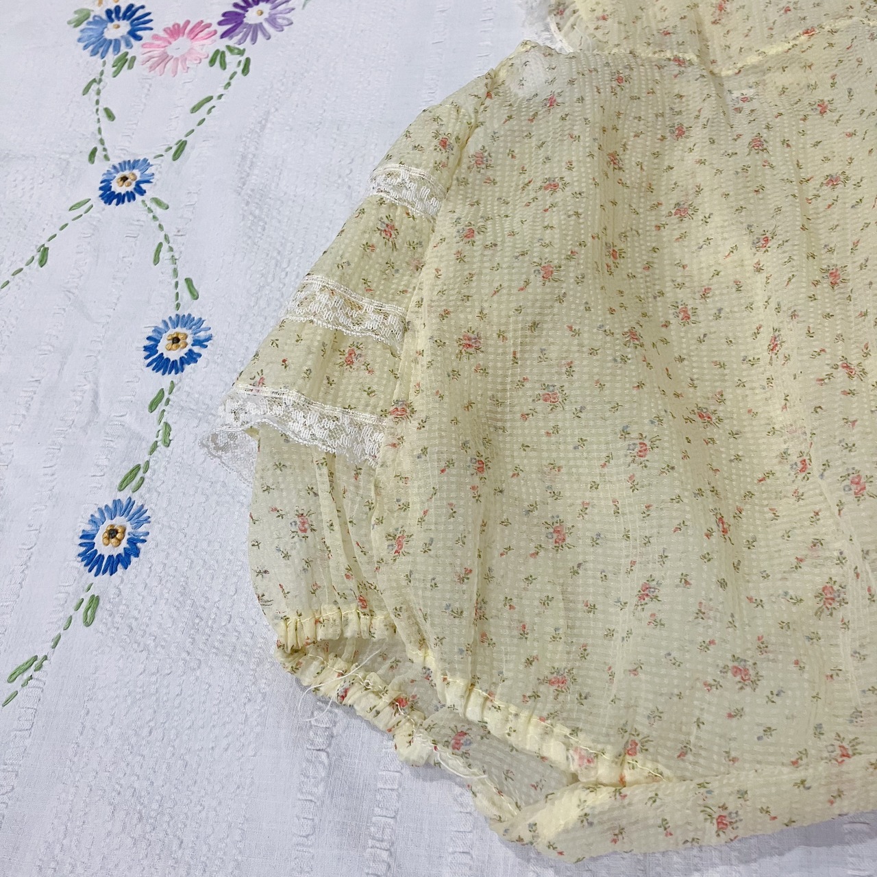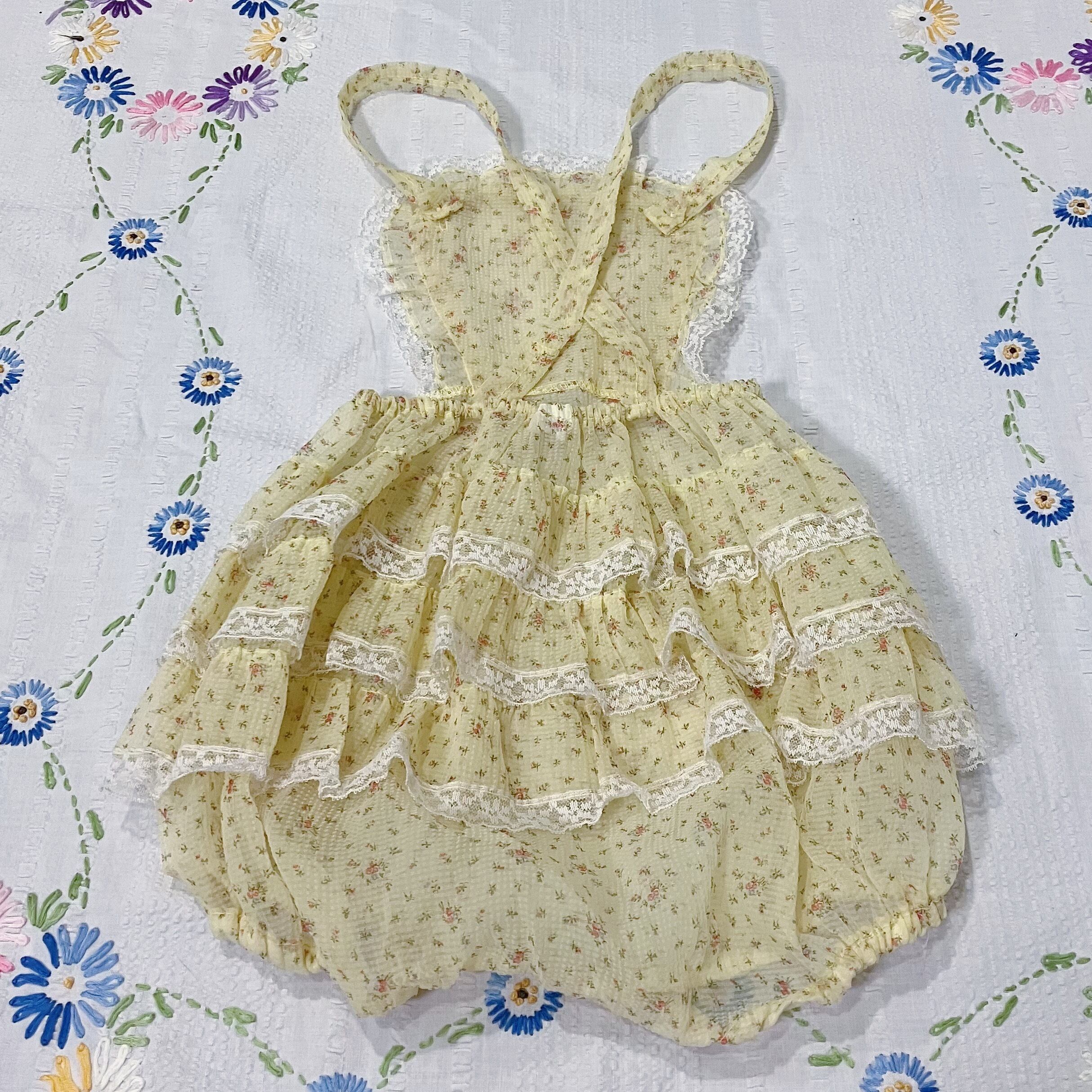 【size80〜90】 50s yellow flower printed rompers(k016)