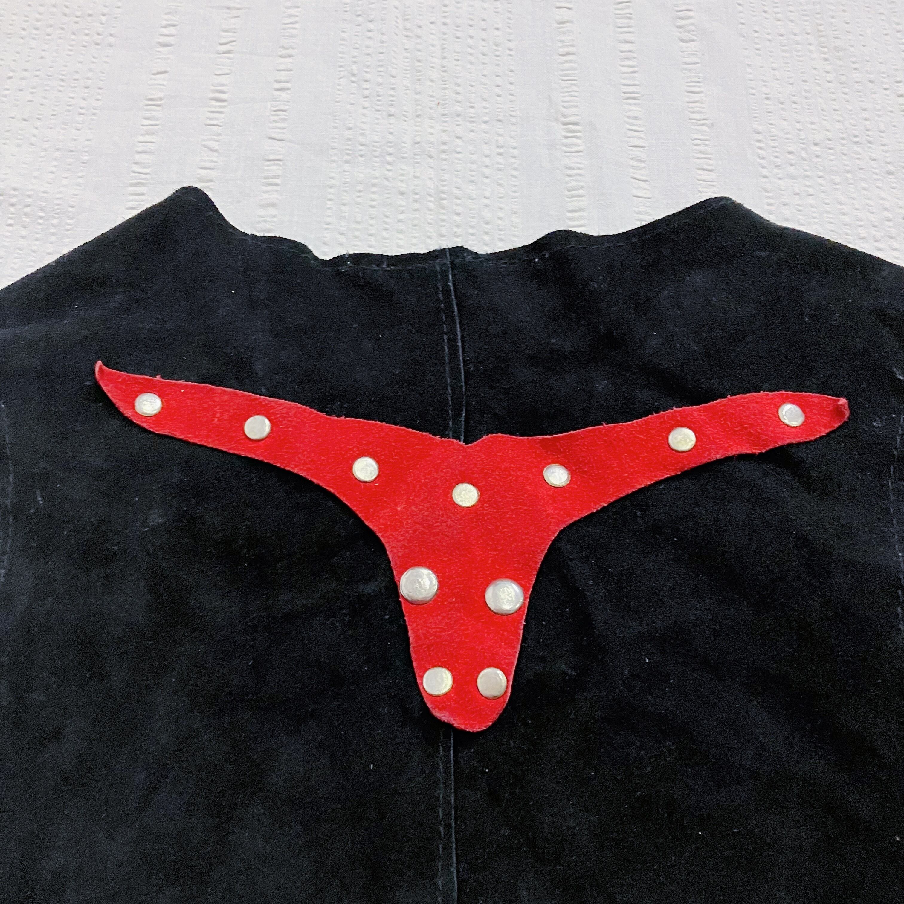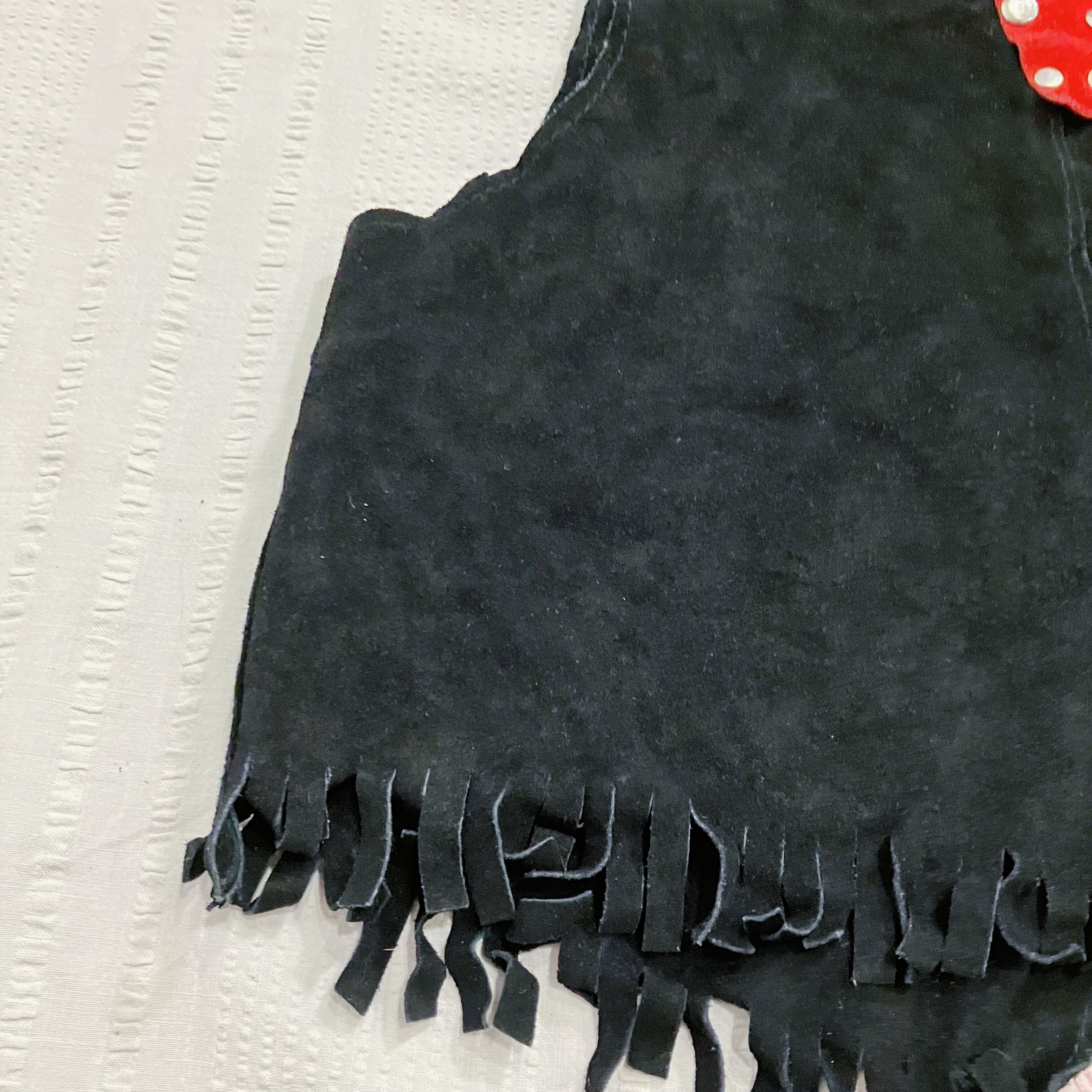 【size100〜120】black and red suède fringe vest(k020)