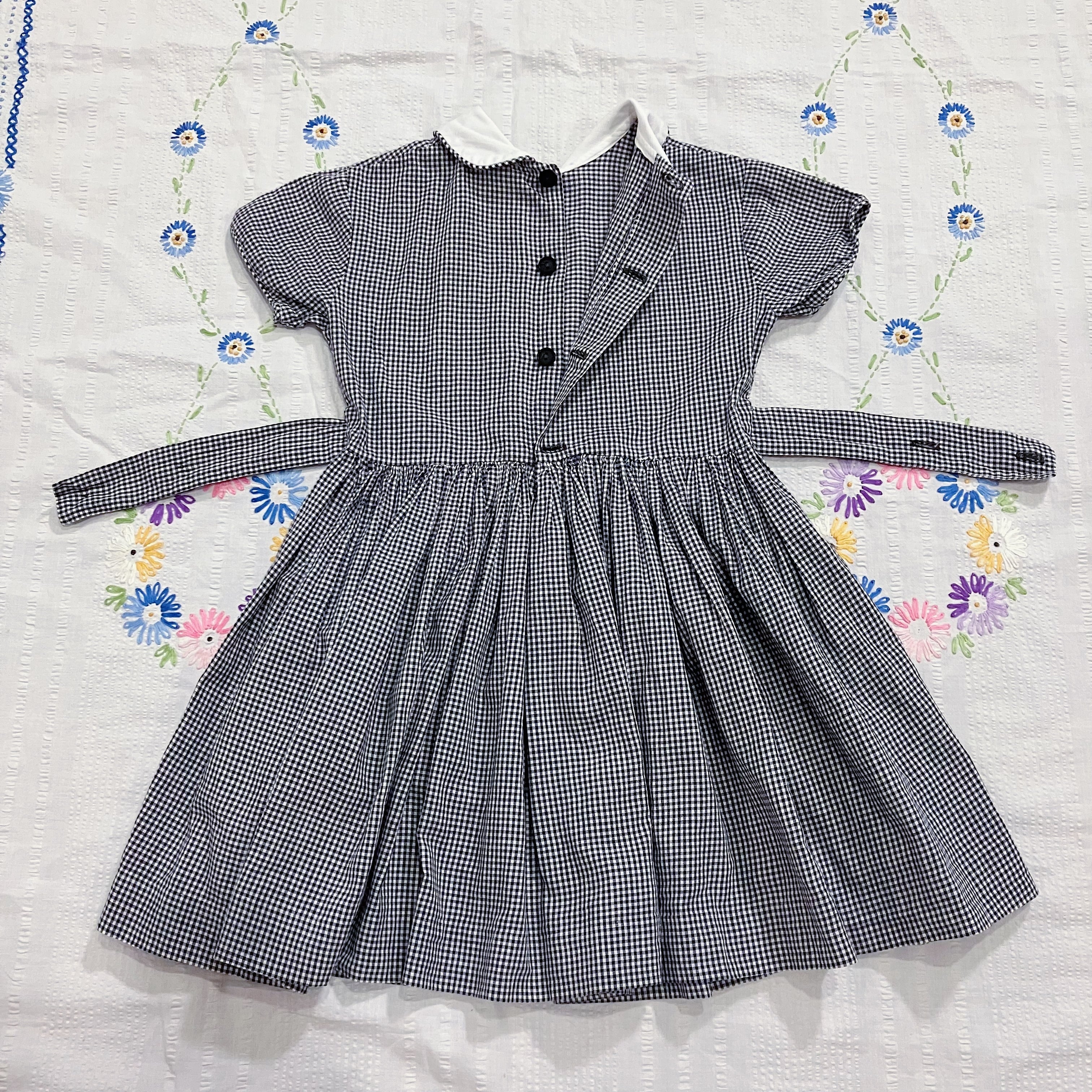 白い襟にギンガムチェックが可愛い50年代ワンピース。