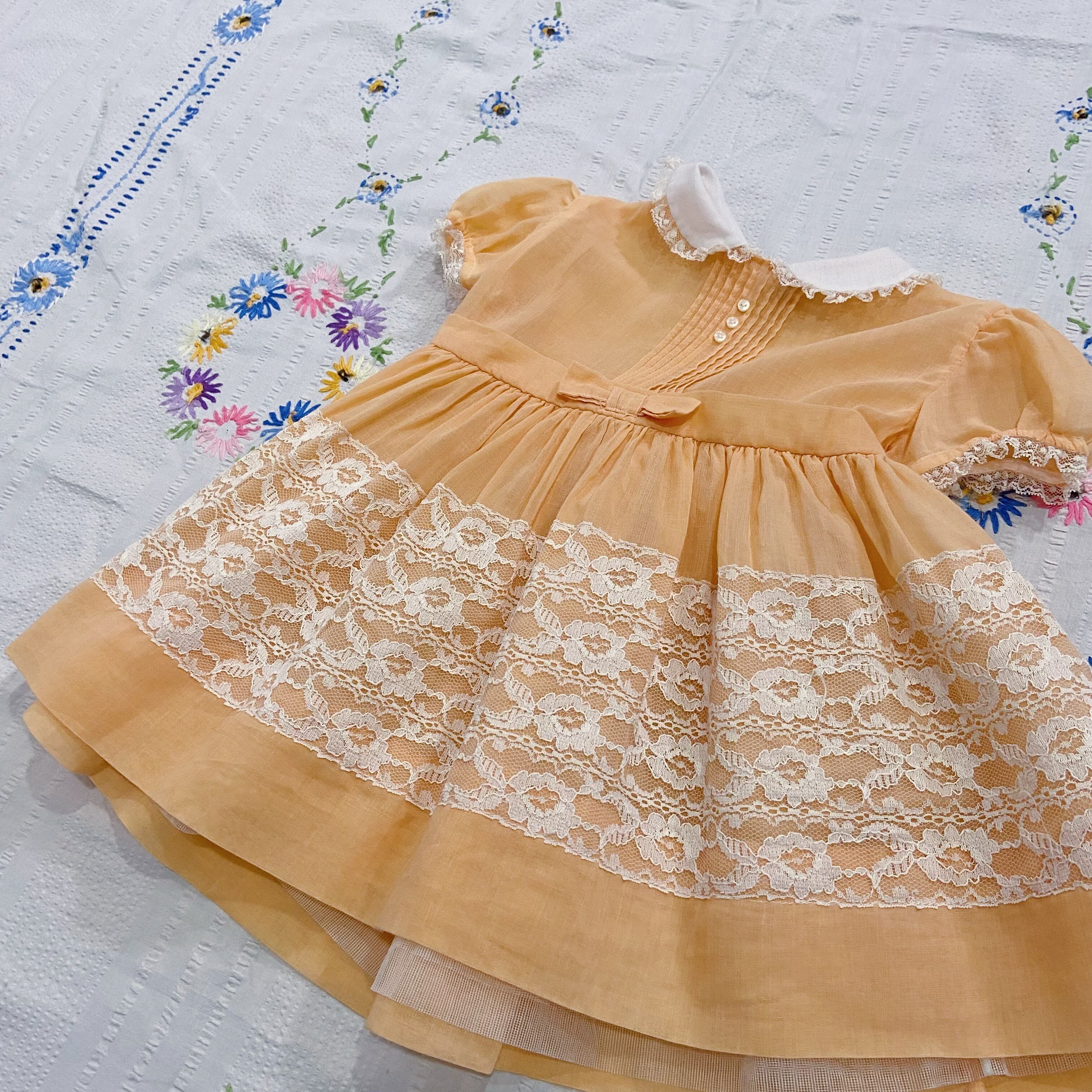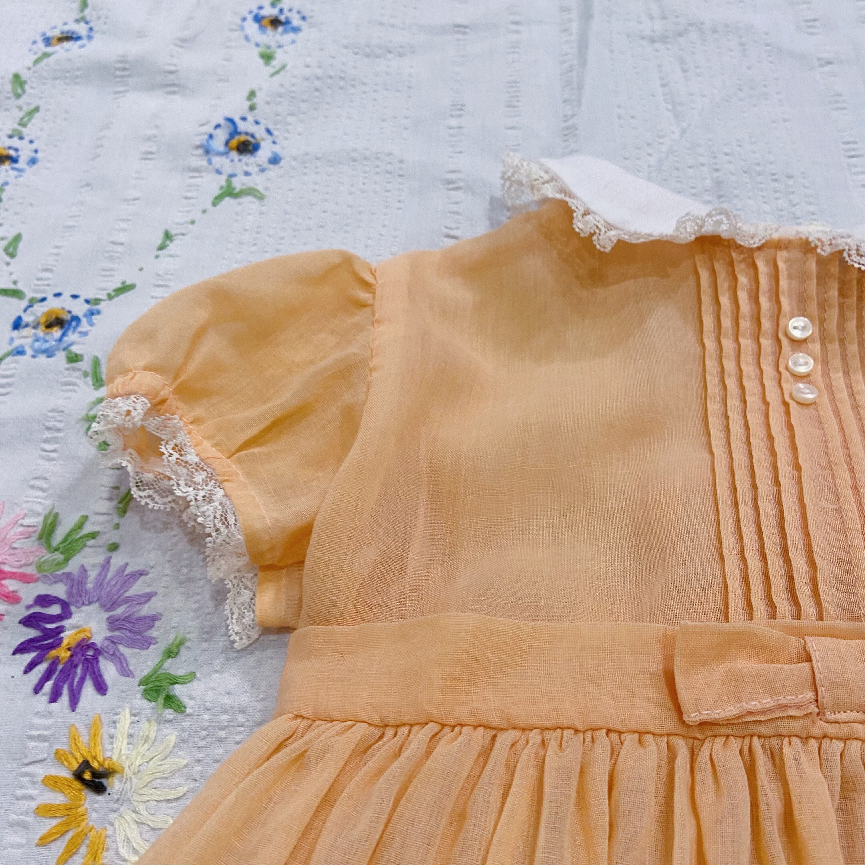 ピーチオレンジの色合いが可愛い、50年代頃のワンピースです。