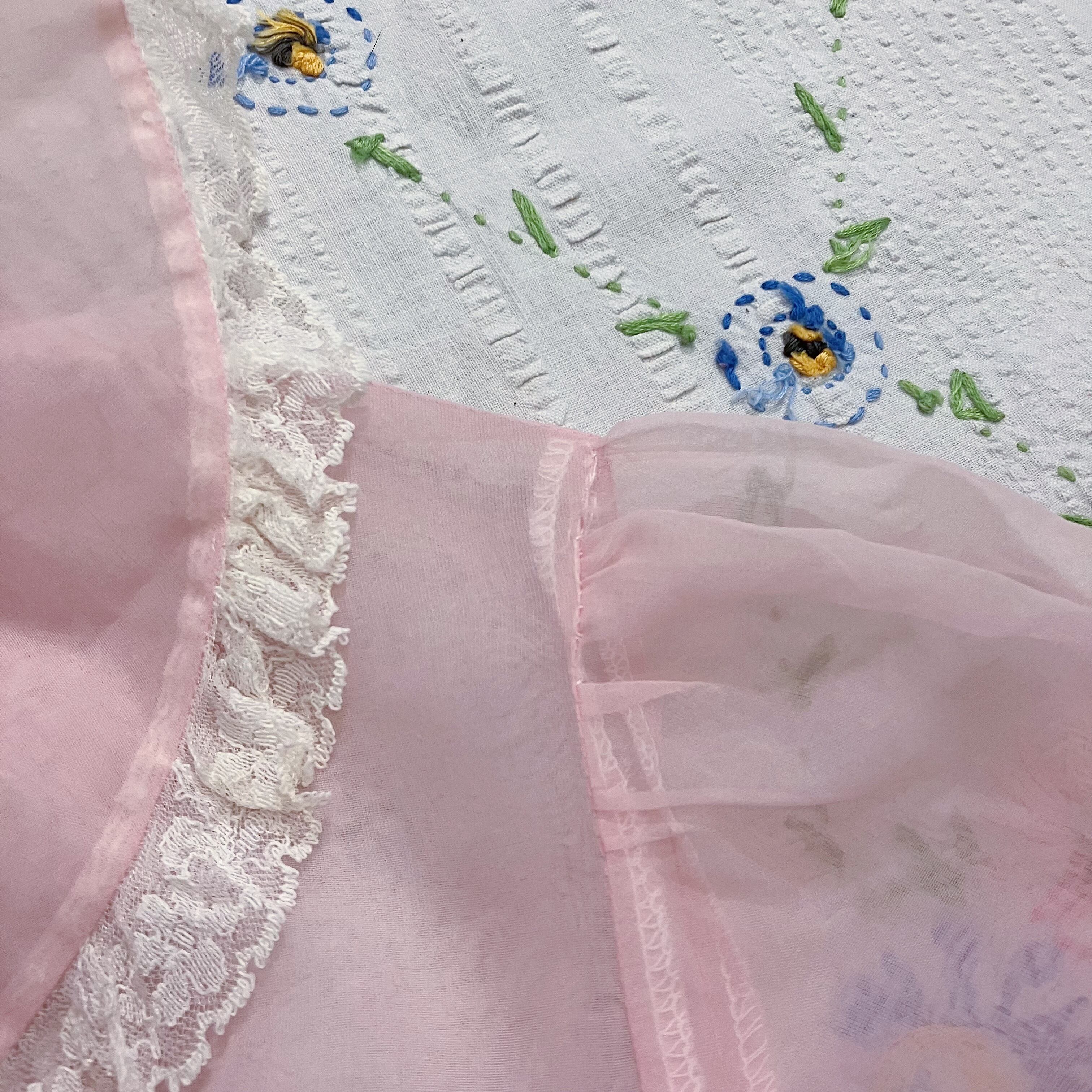 桜色のソフトオーガンジー素材が可愛い、50年代のワンピースです。