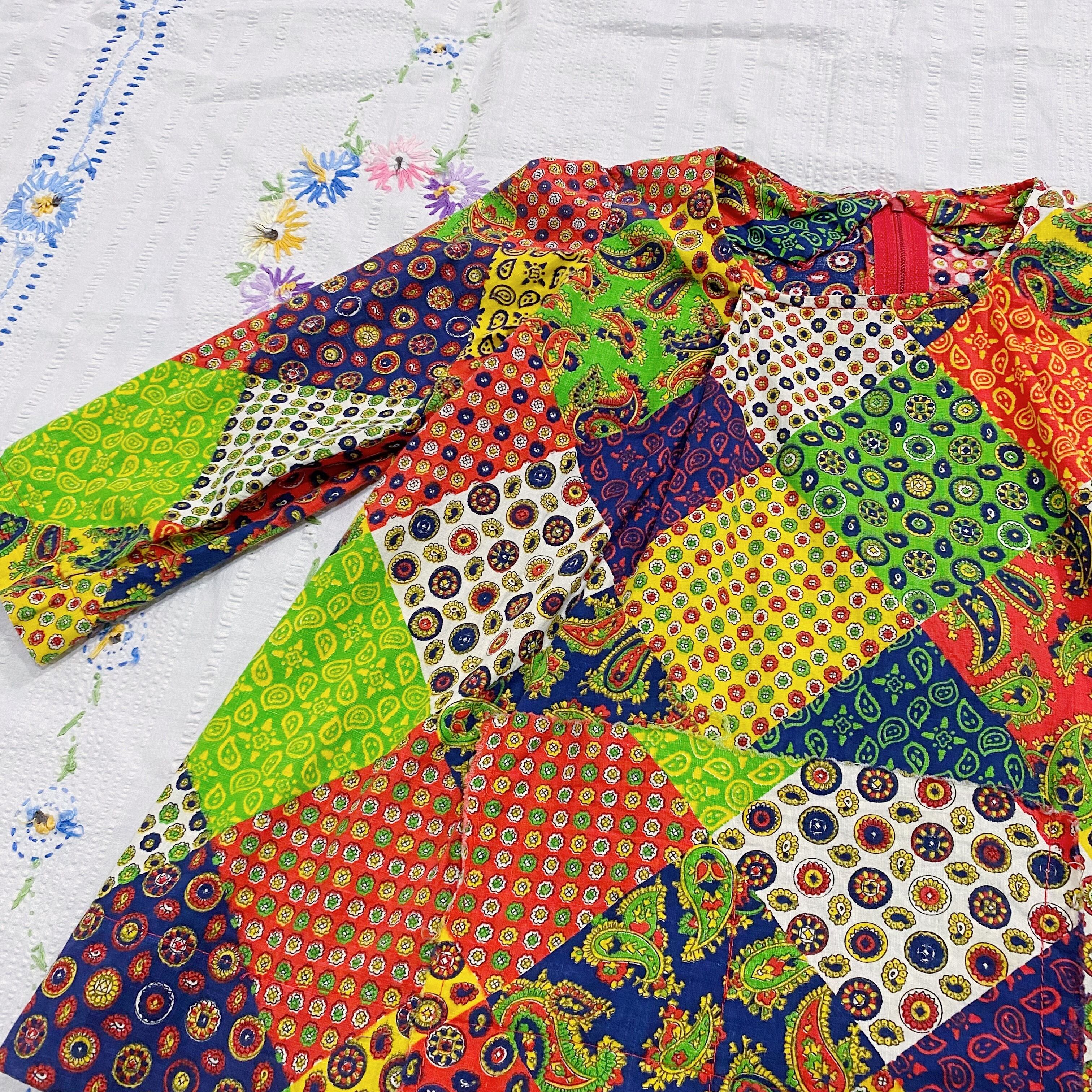 70年代のパッチワークプリントが可愛いチュニックトップです。