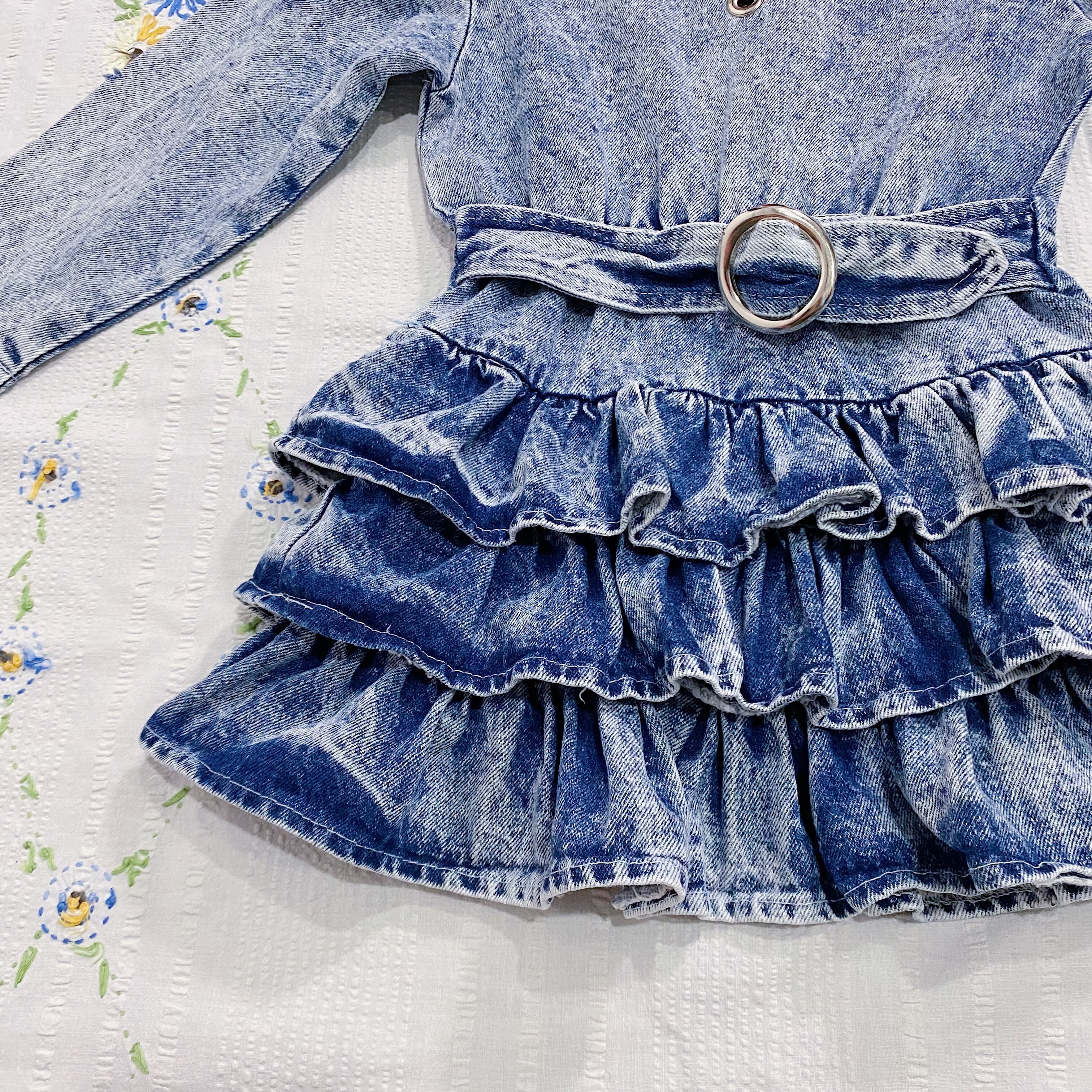 【size90】denim frill dress
