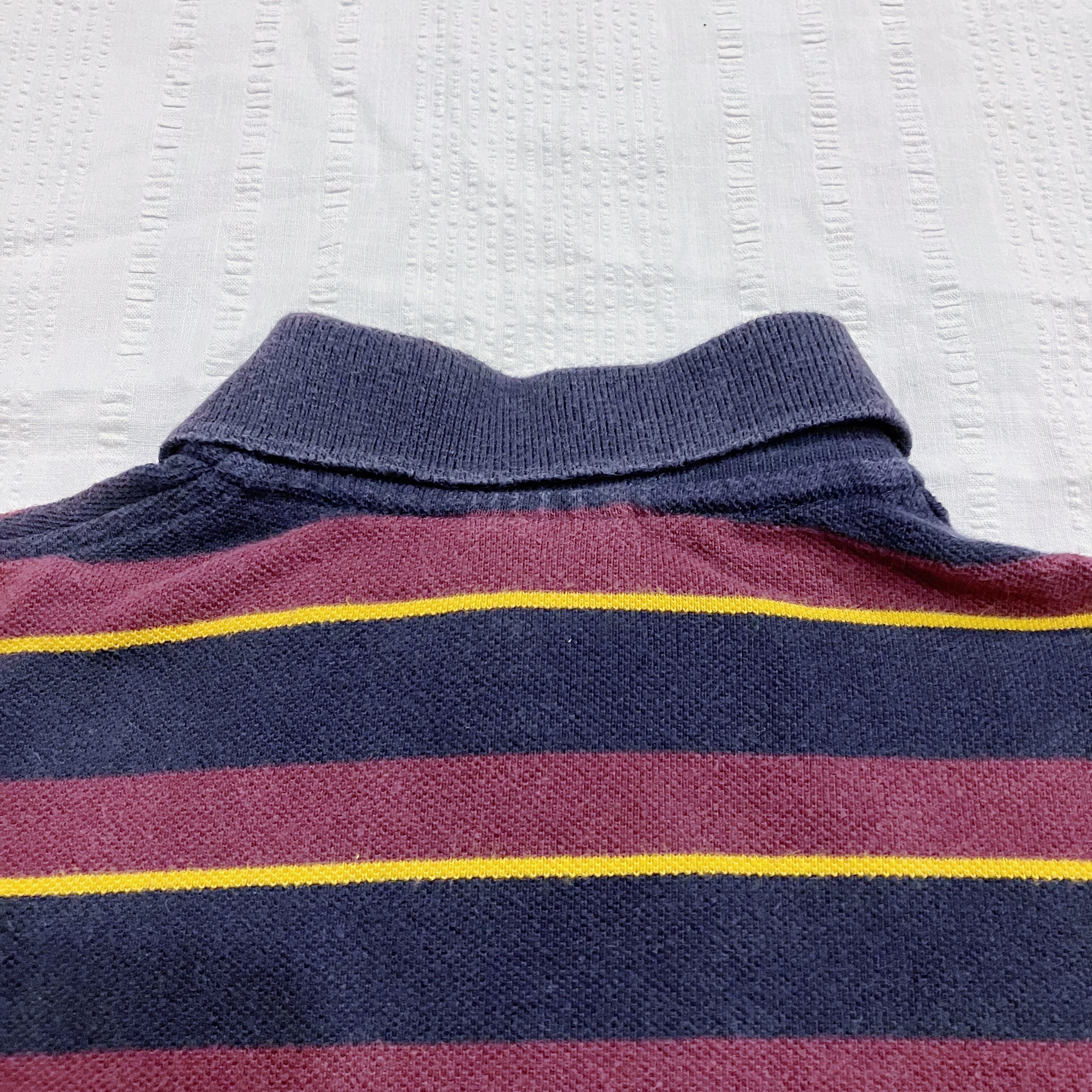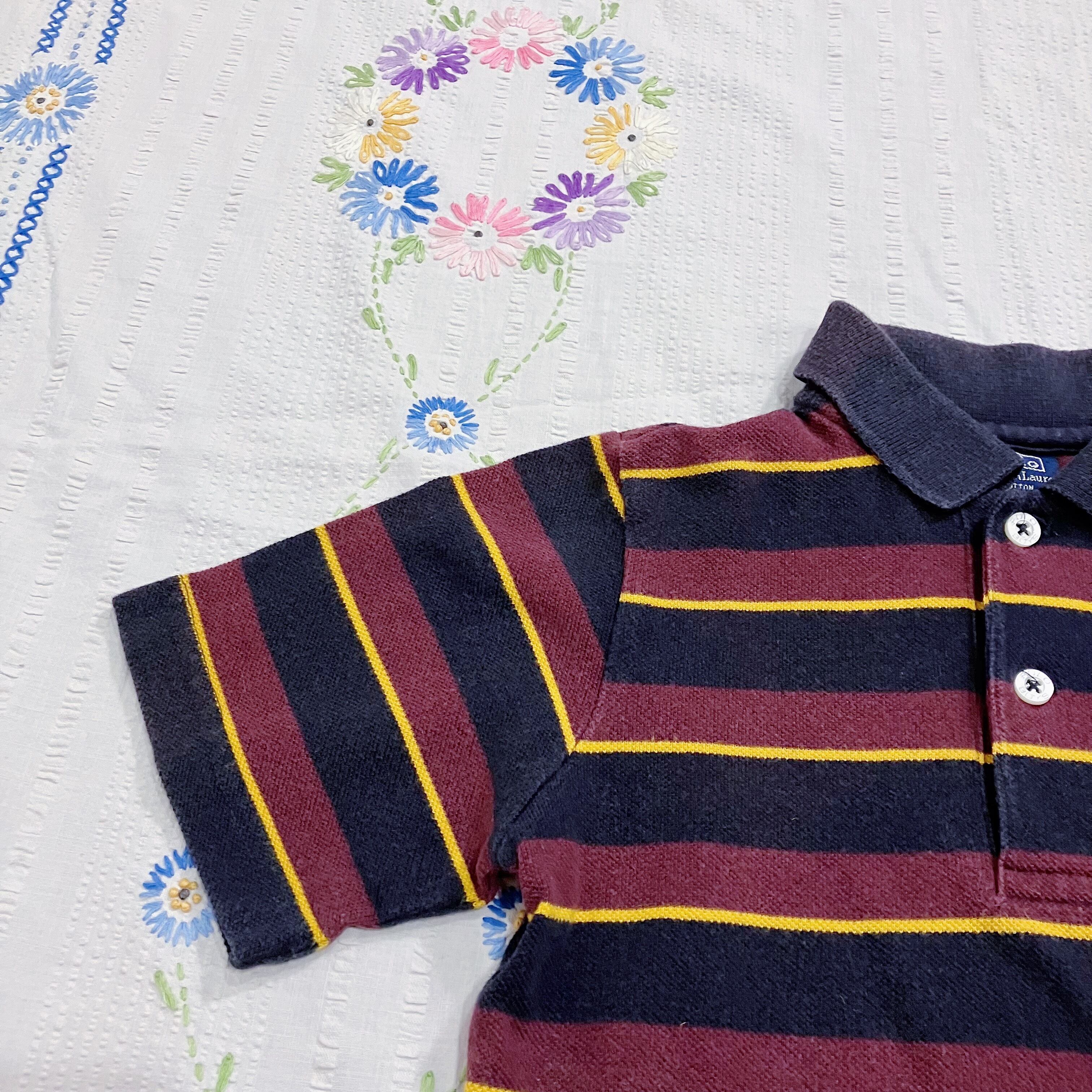 【size100-110】"Polo" black and burgundy stripe polo shirt(k068)