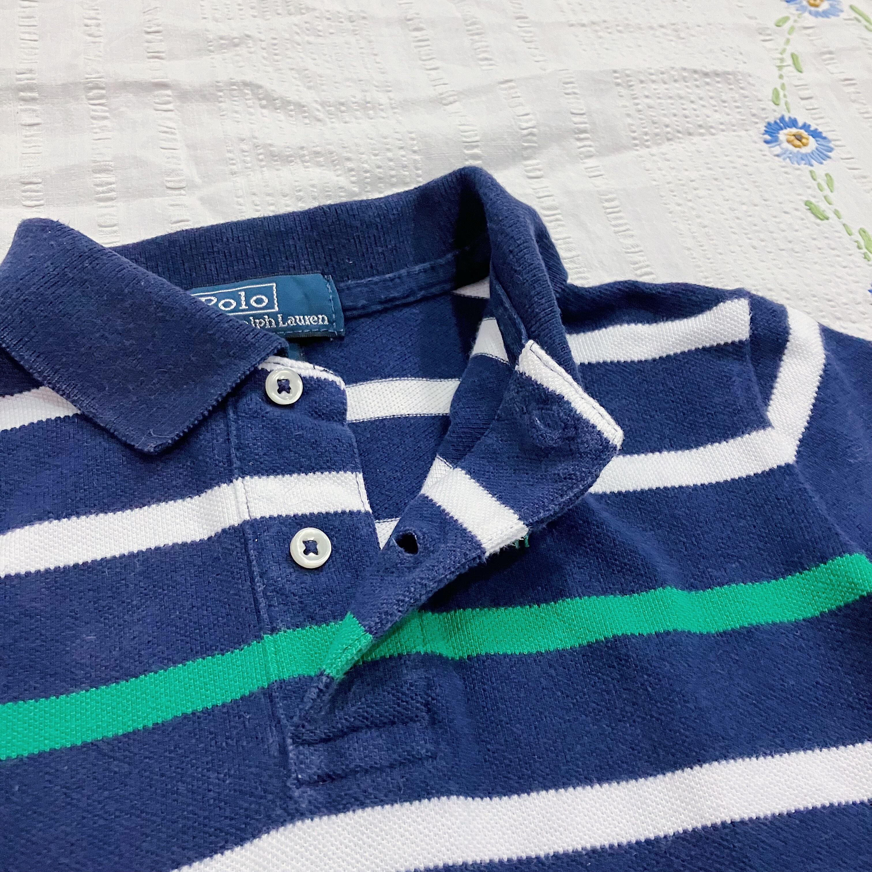 ネイビーに白、そして緑のアクセントカラーが可愛いポロシャツです。