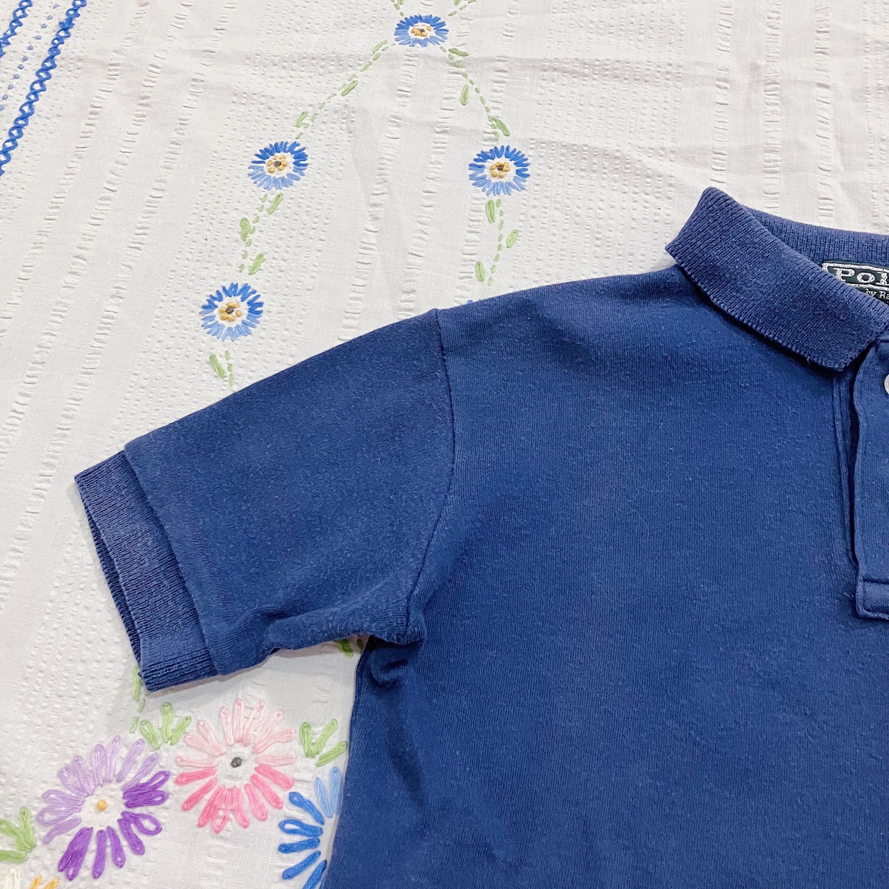 赤で刺繍されたラルフローレンのワンポイントがアクセントになっています。