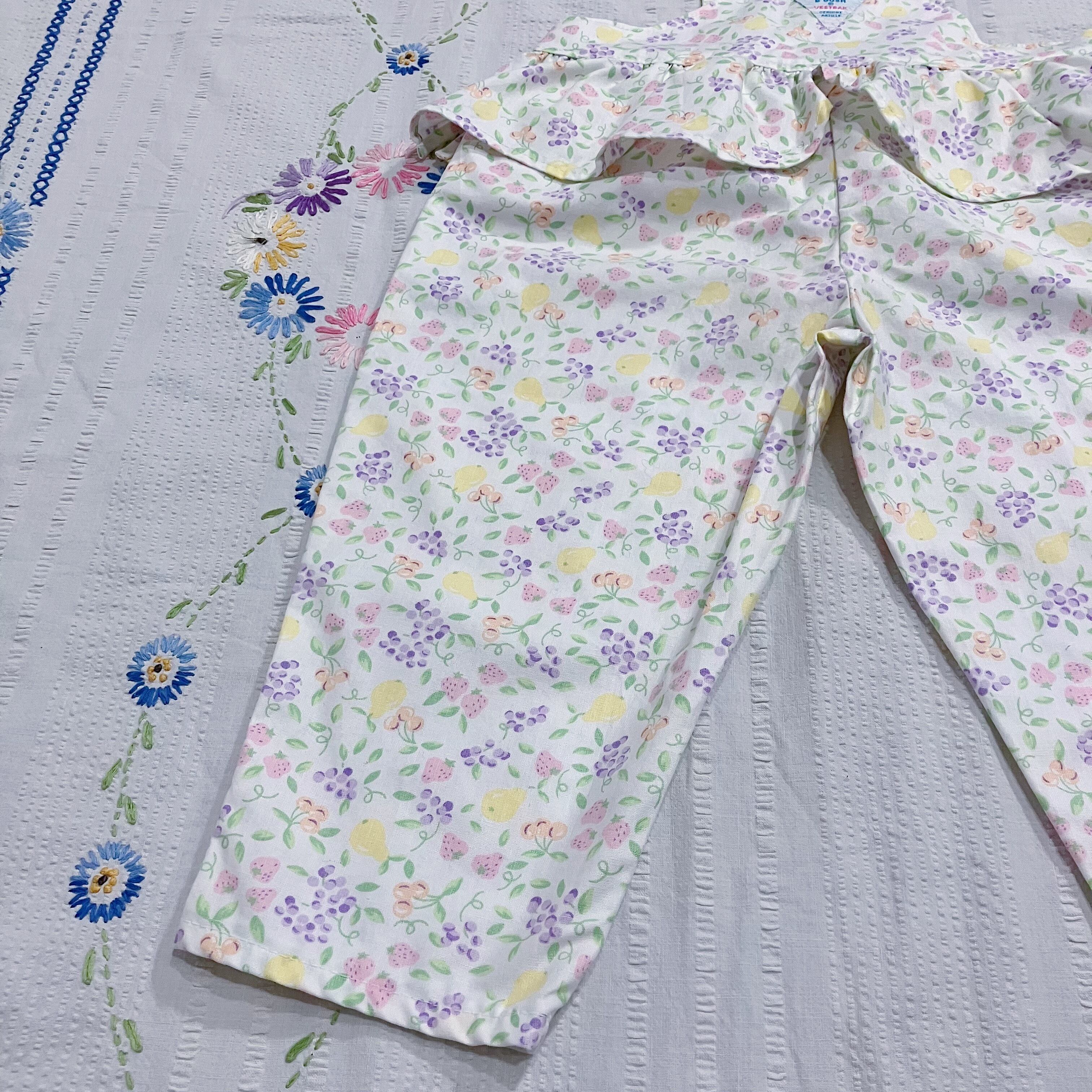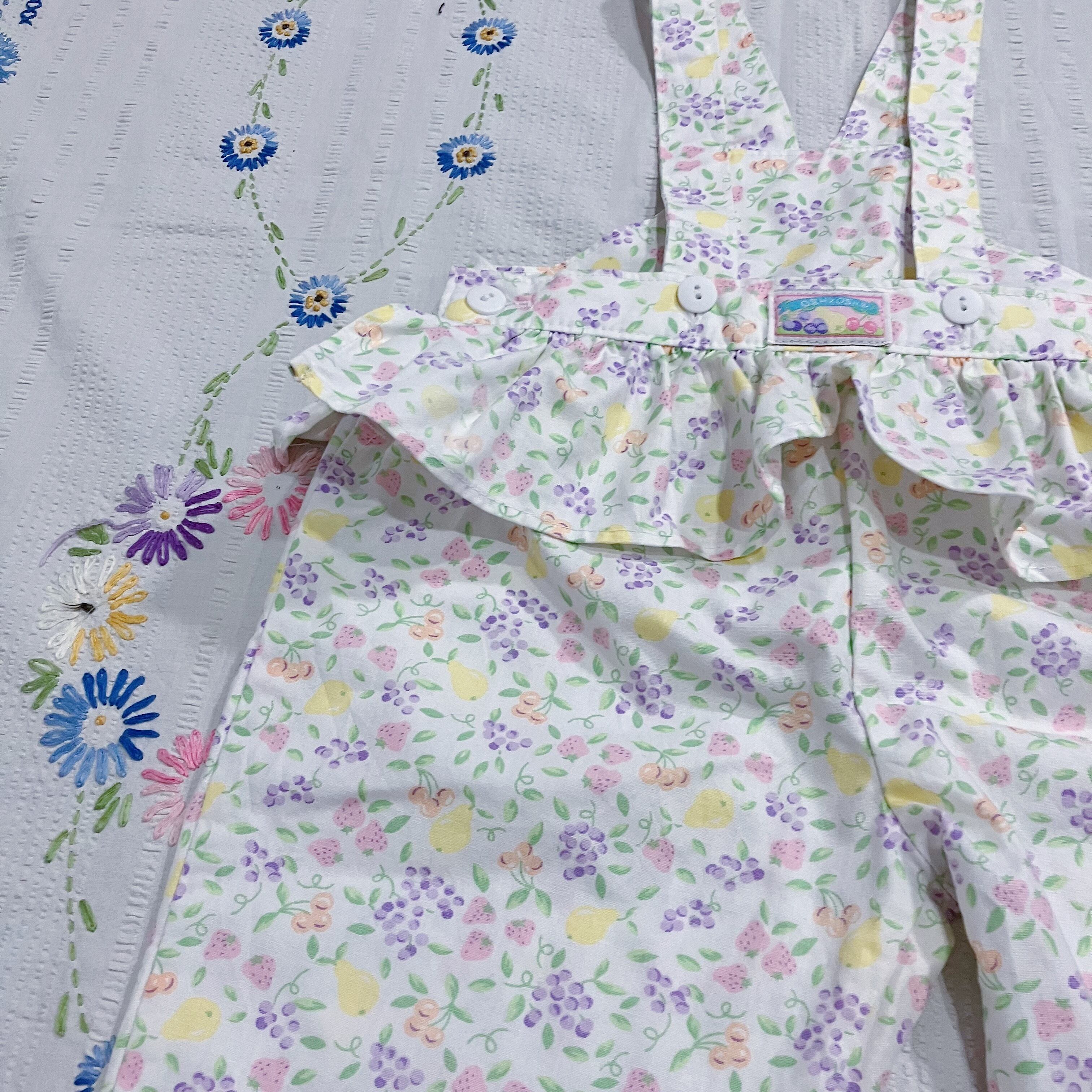 いちごやぶどうのフルーツ柄がとっても可愛い、オシュコシュのオーバーオールです。
