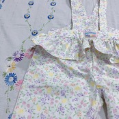 全面のフリフリの部分や、裾の部分に小さなシミが見受けられますが柄に混ざっているのであまり目立ちません。