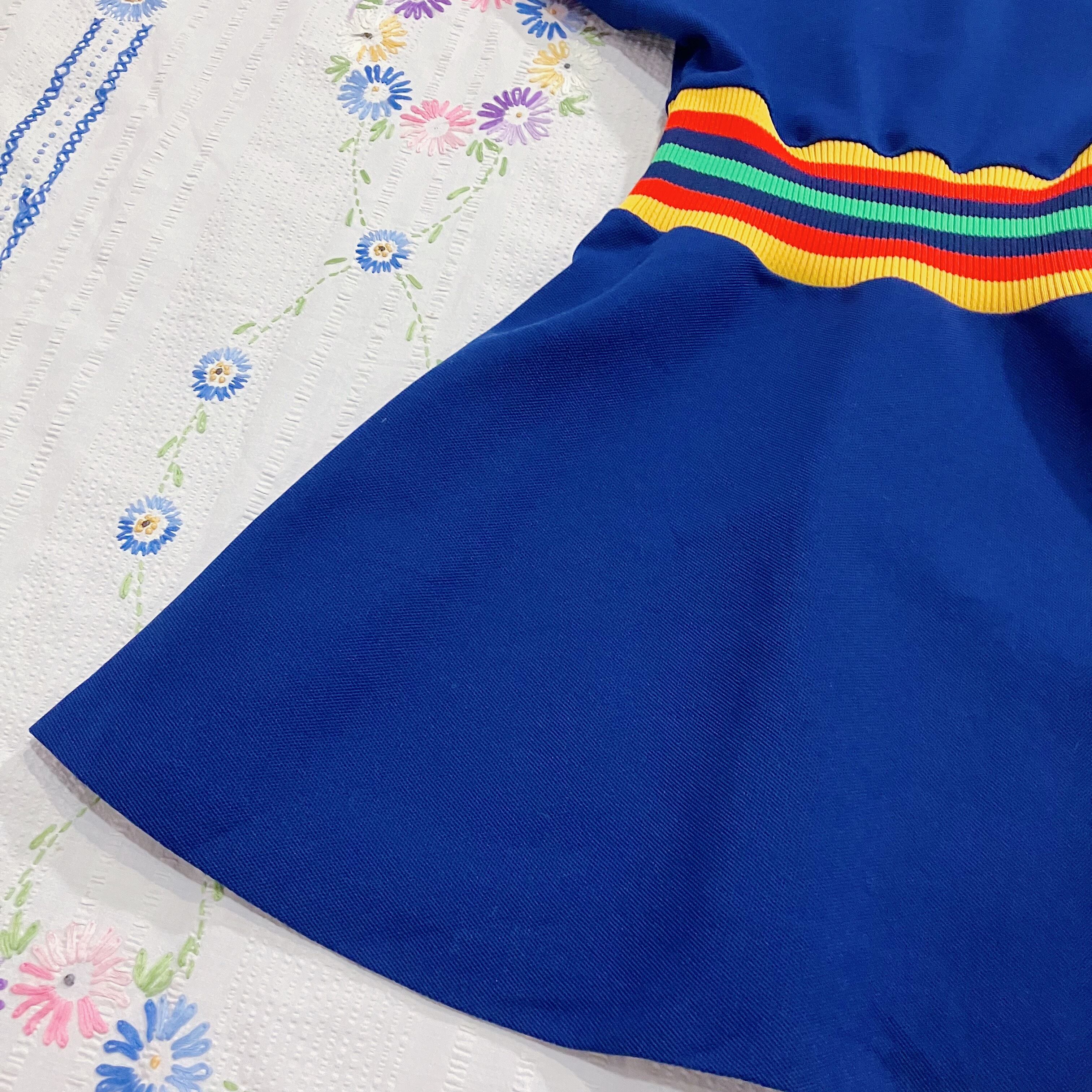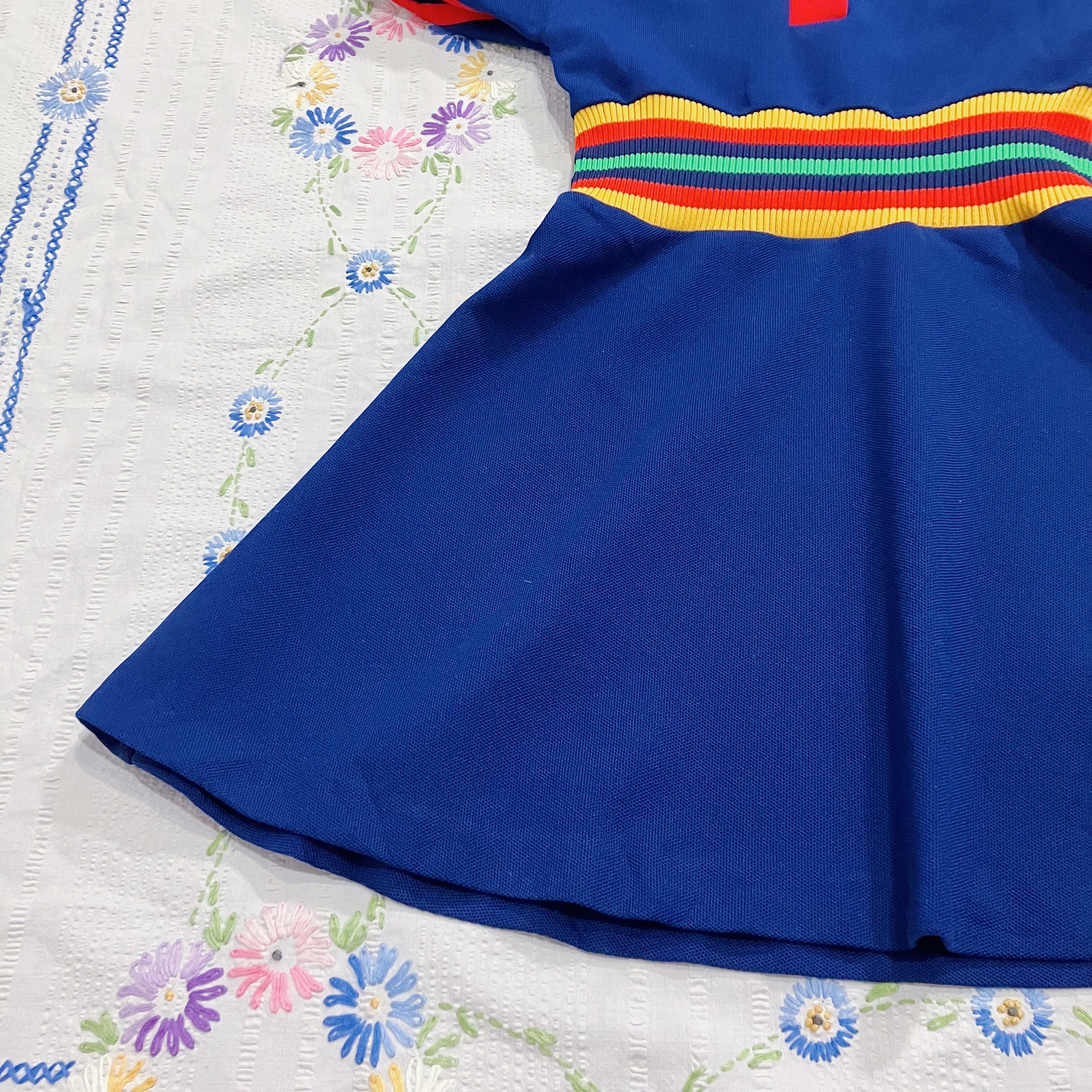 【size110-120】70s navy and rainbow foodie dress