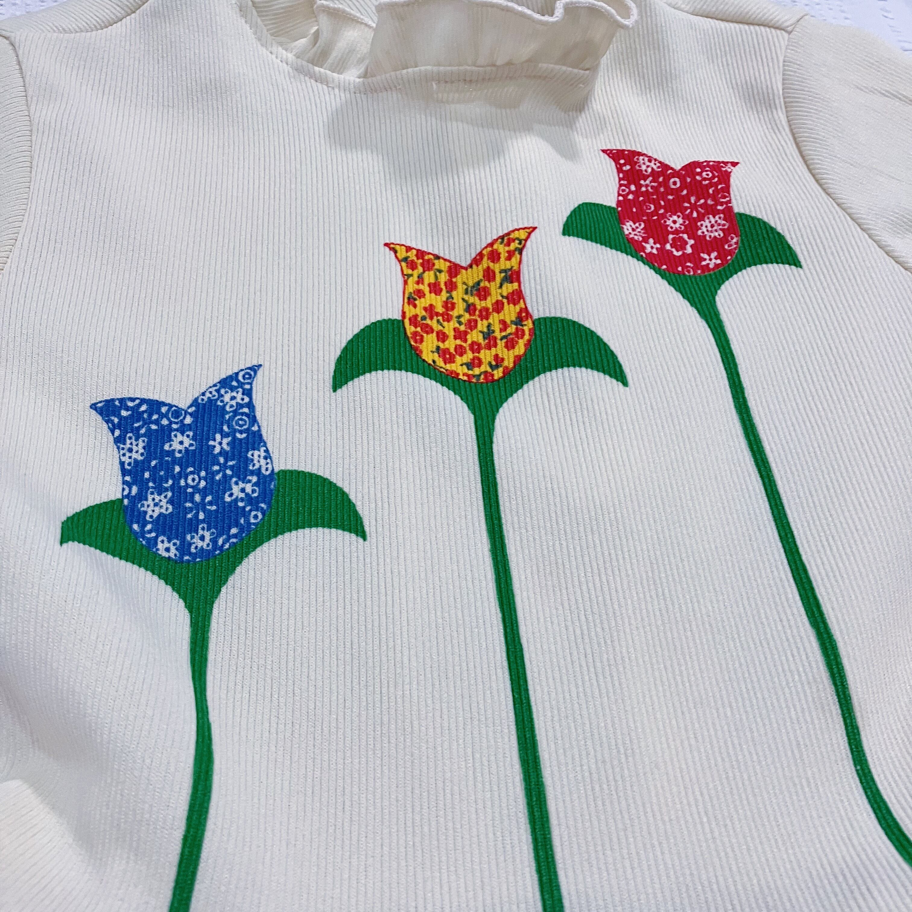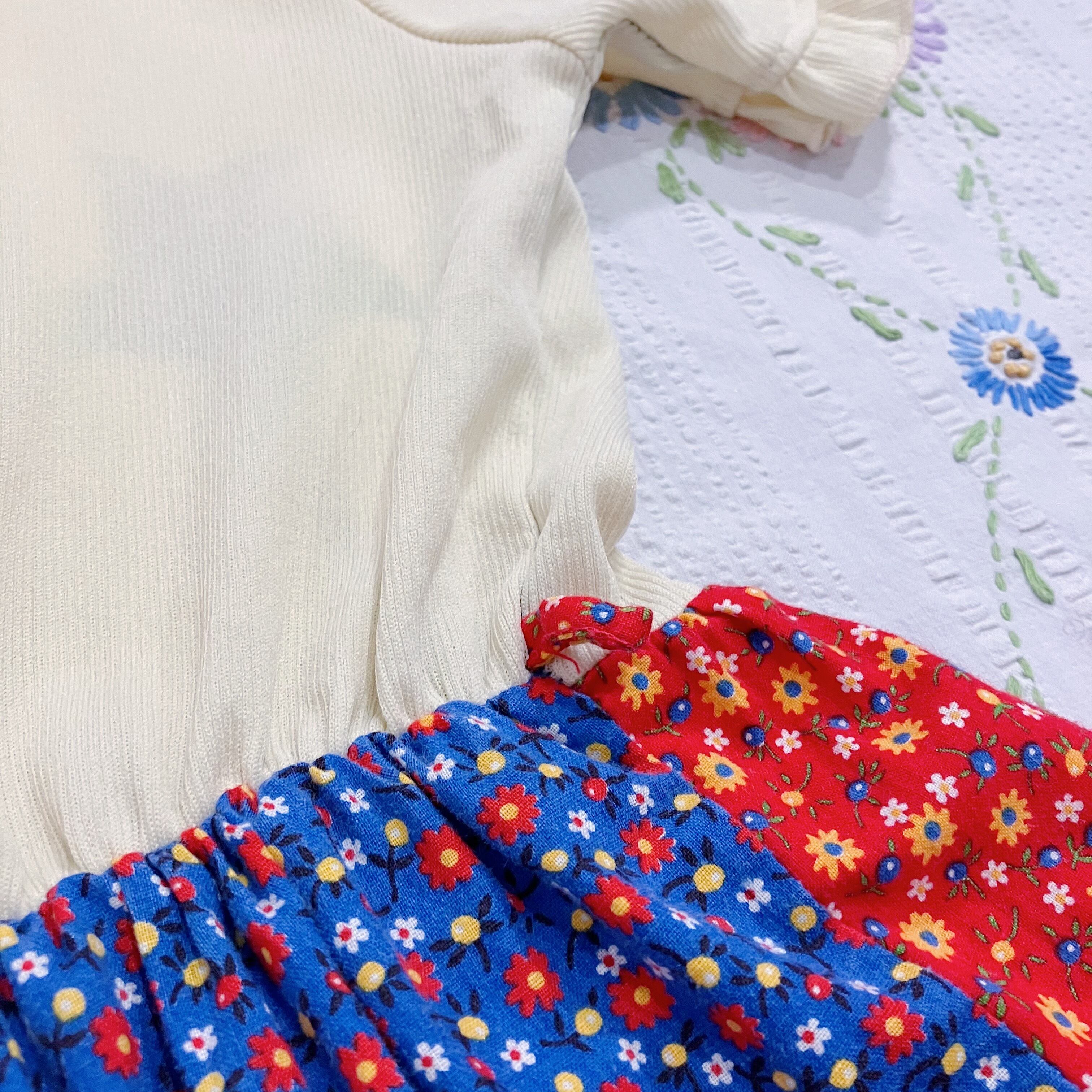 胸のパッチにスカート部分のカラフルなパッチワークが最高な一枚。