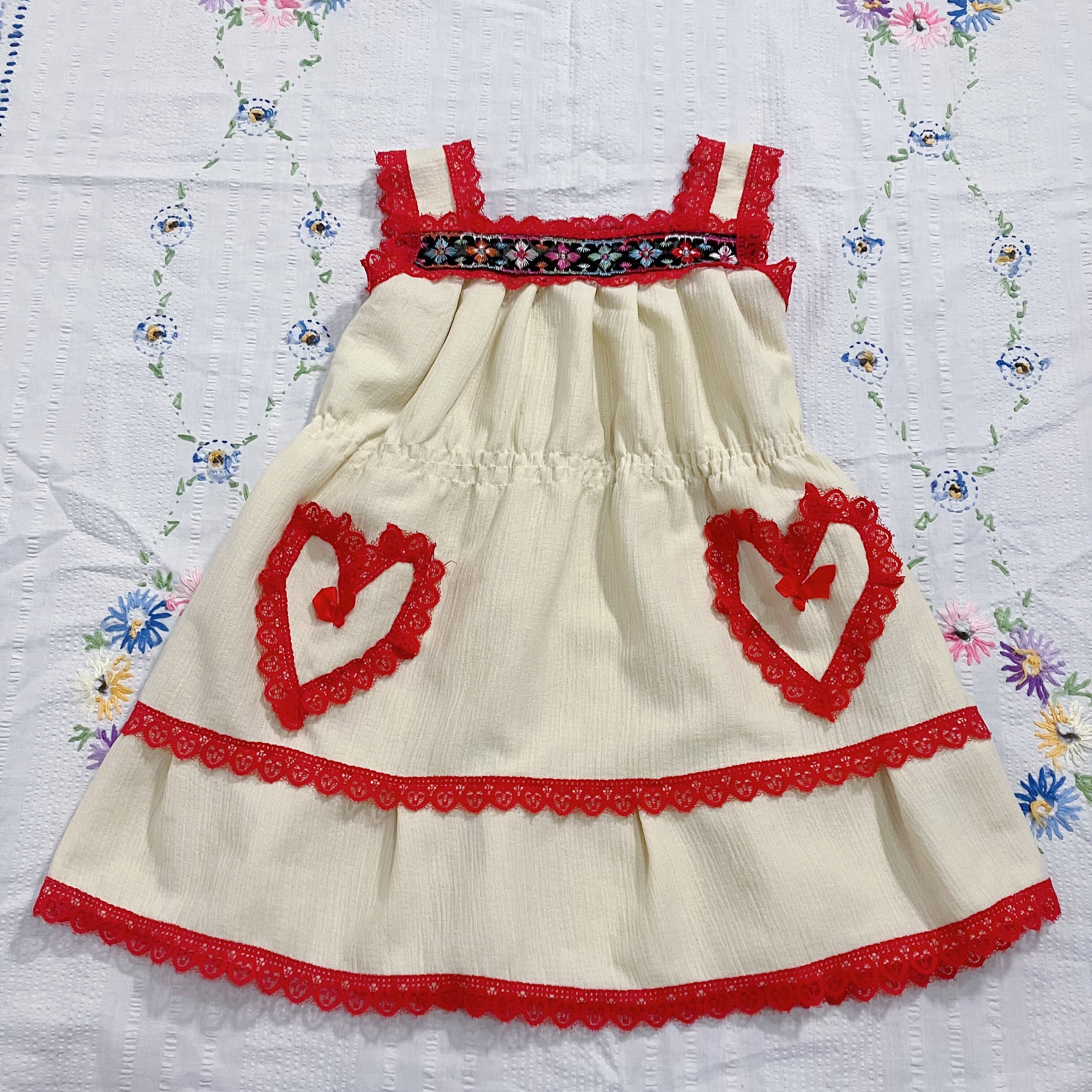 【size110-120】cream & red fiower embroidery heart dress