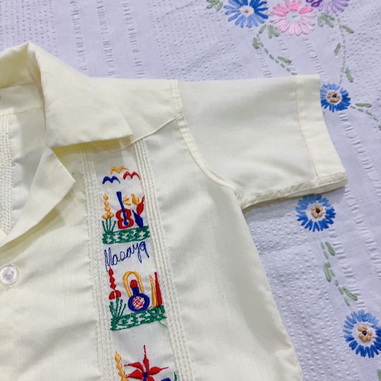 【size80-90】Yellow embroidery tuck shirt