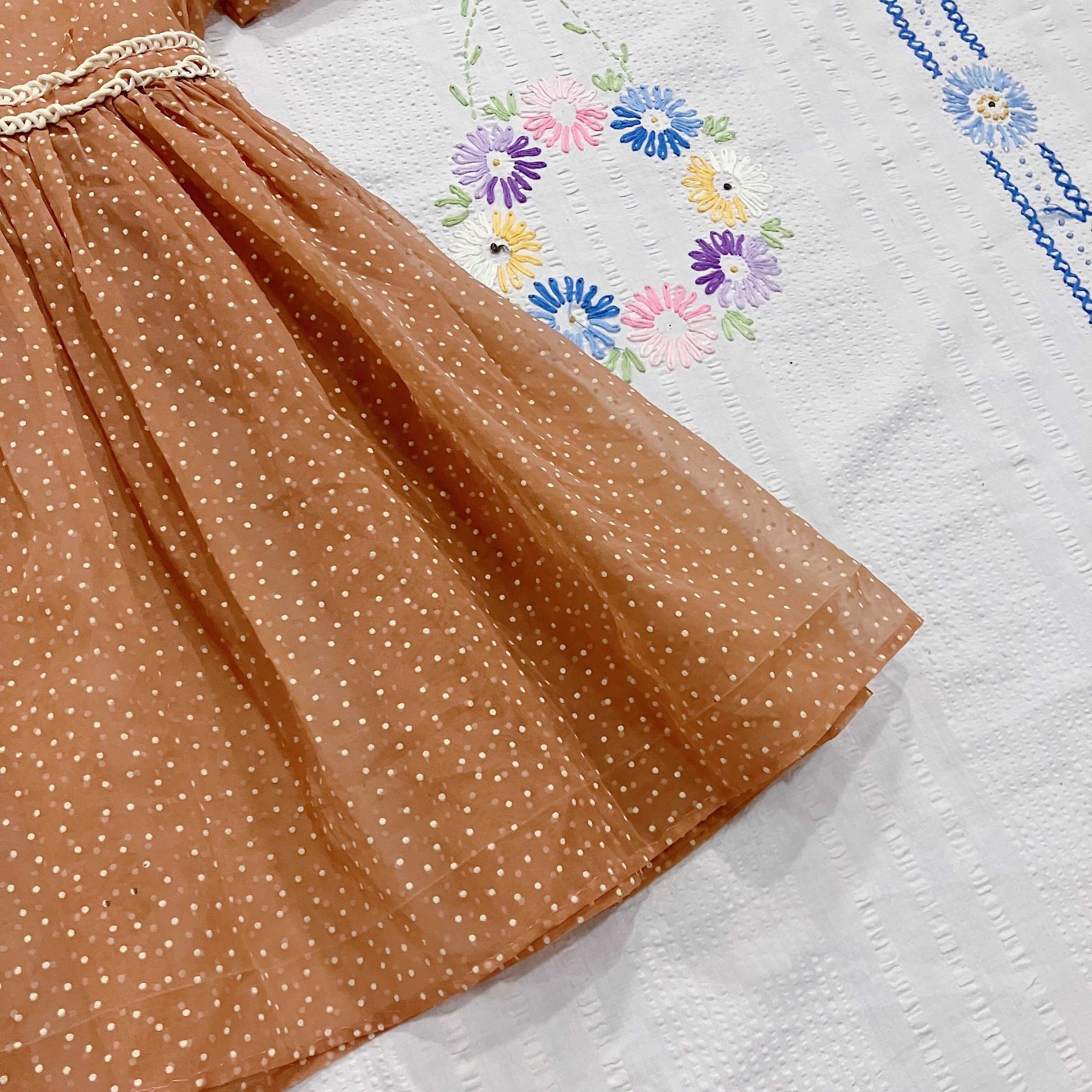 【size90-100】Brown dot sheer dress(k110)