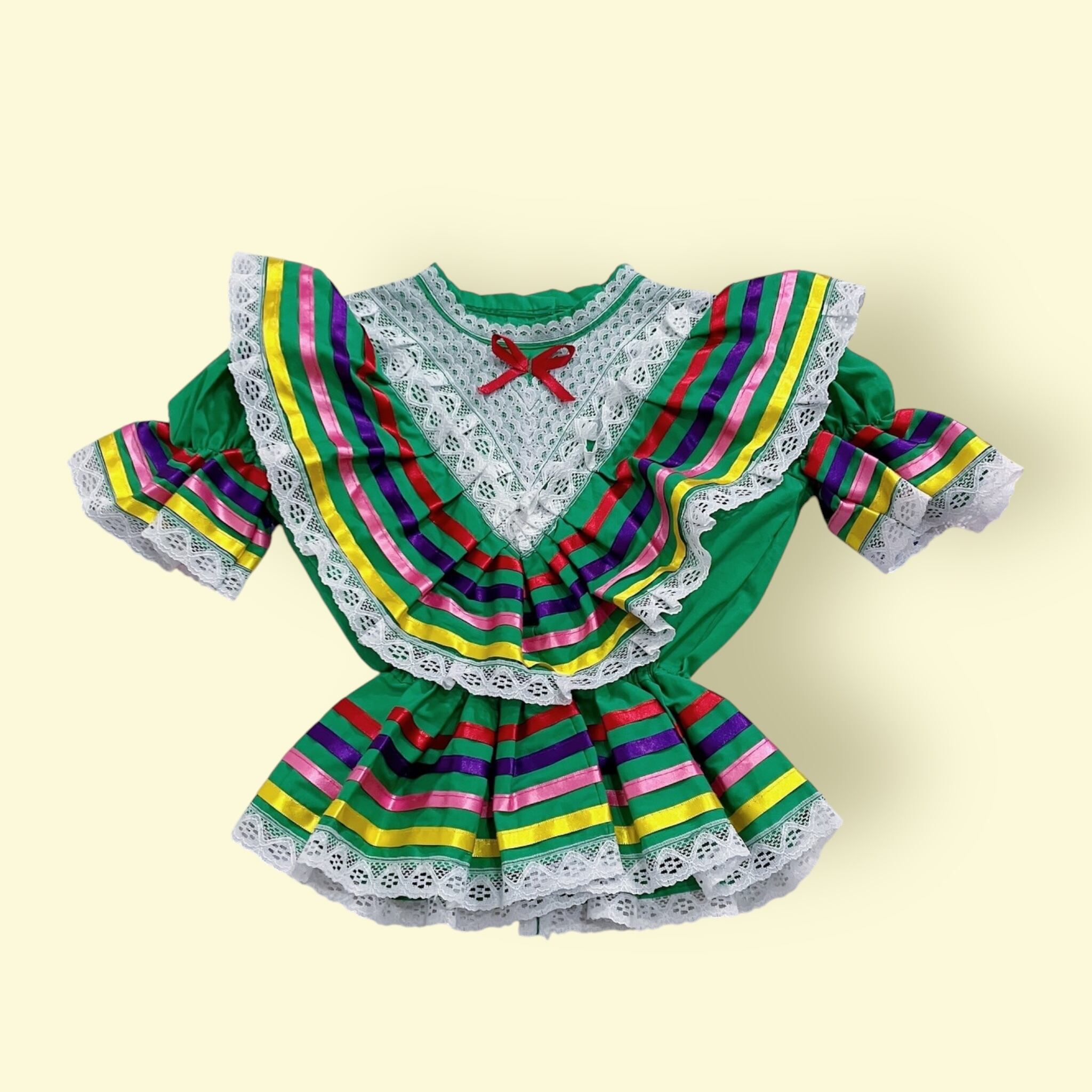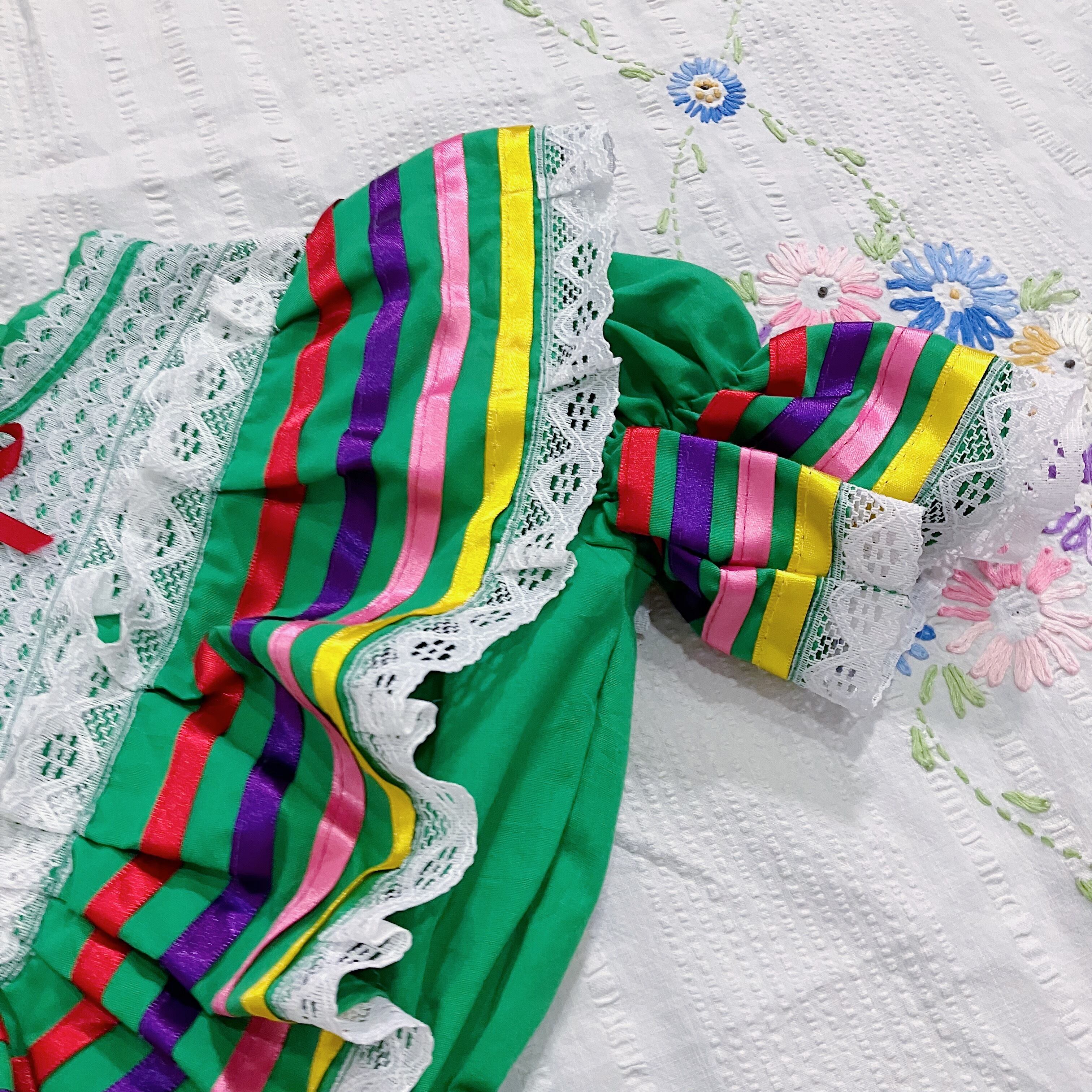 【size110-120】70s Green Mexican lace and ribbon tops(k118)