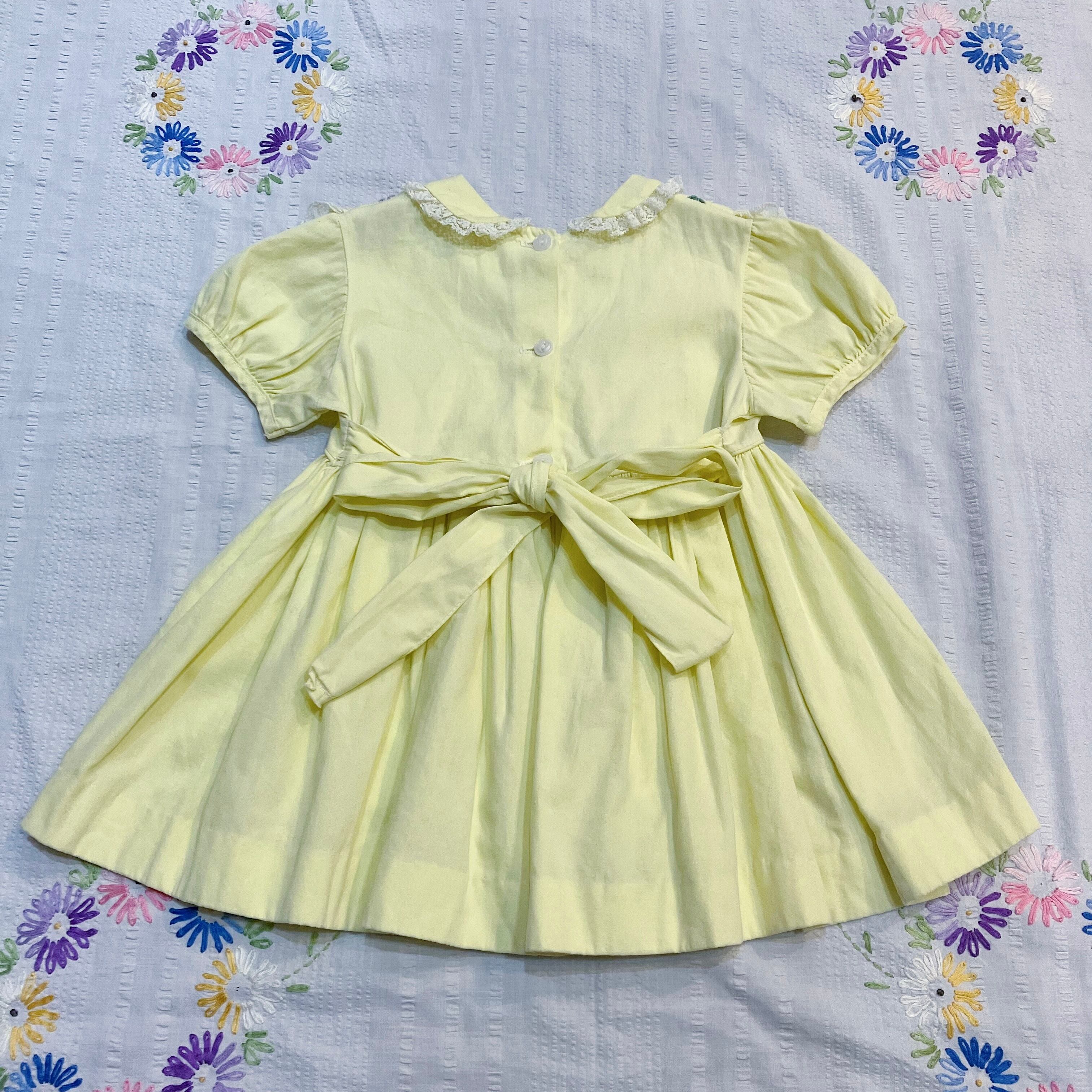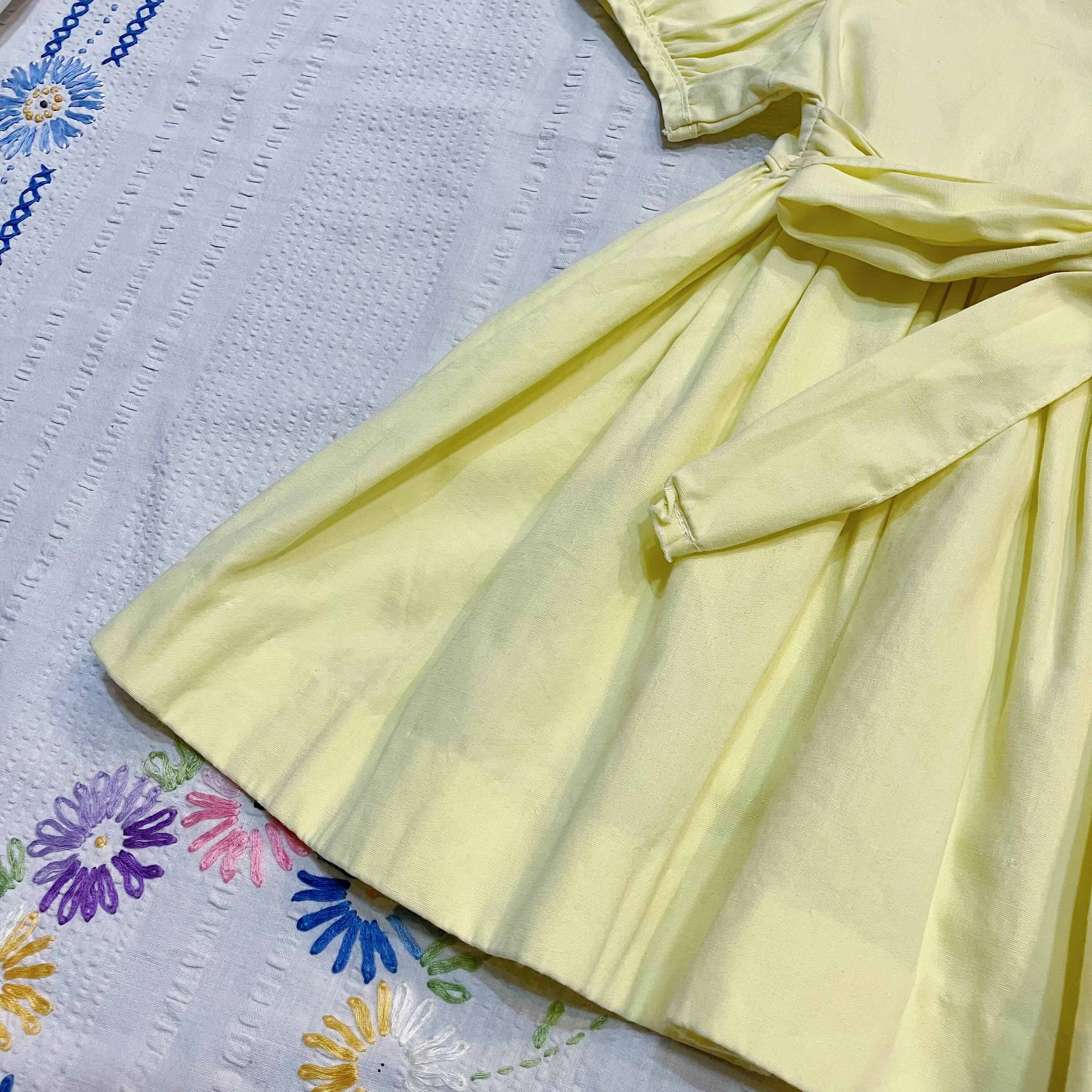胸元のお花の刺繍とレースがとっても可愛い黄色いワンピース!