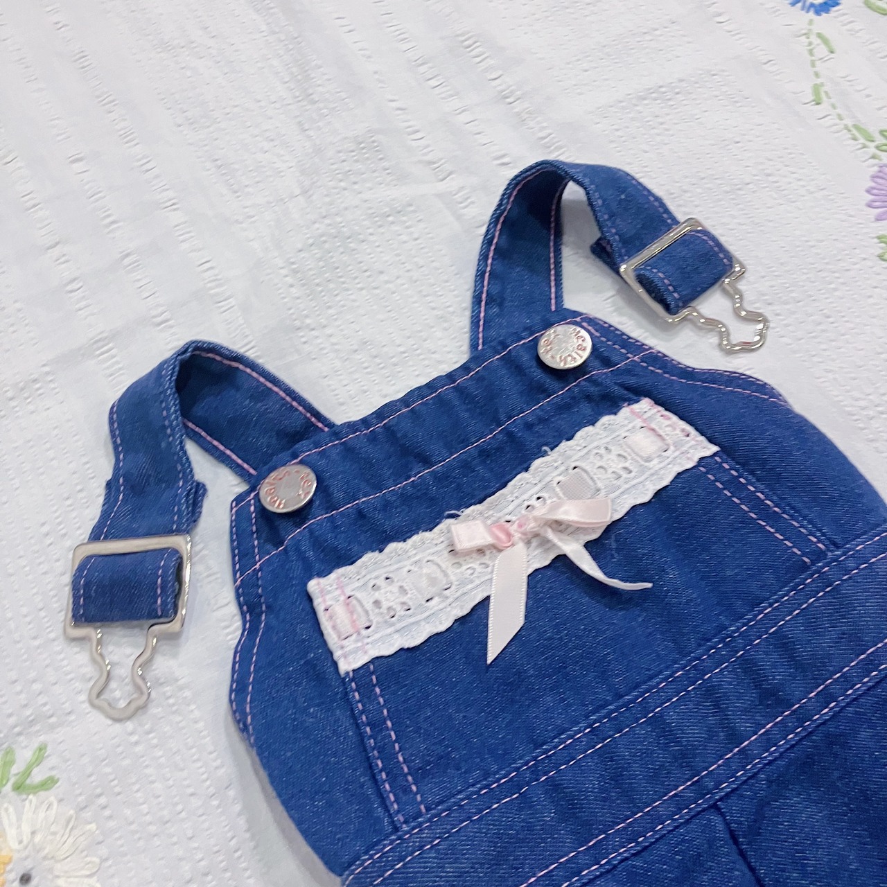 とってもかわいいピンクのレースとリボンがついたオーバーオール!