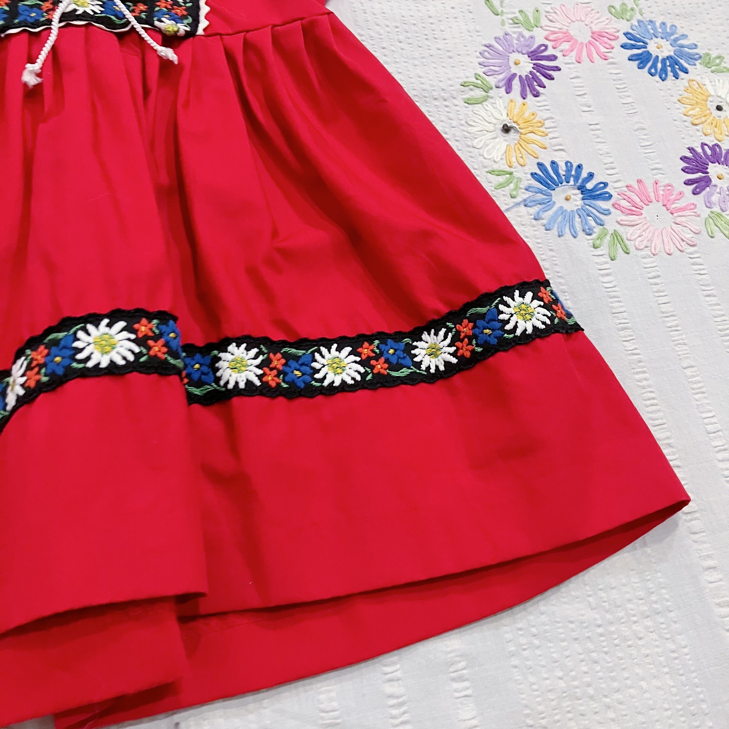 お花の刺繍や、レースがとってもかわいい赤いワンピース!