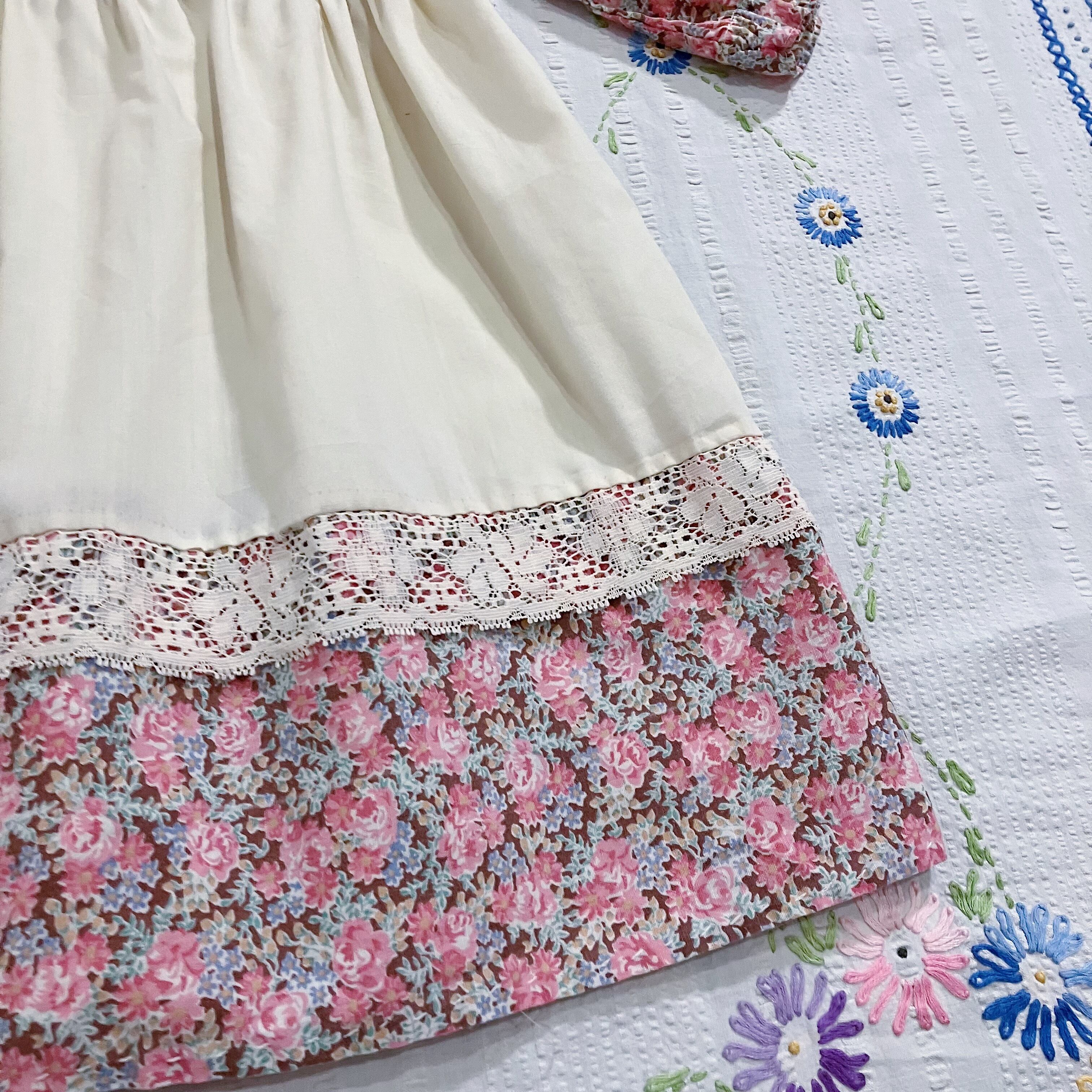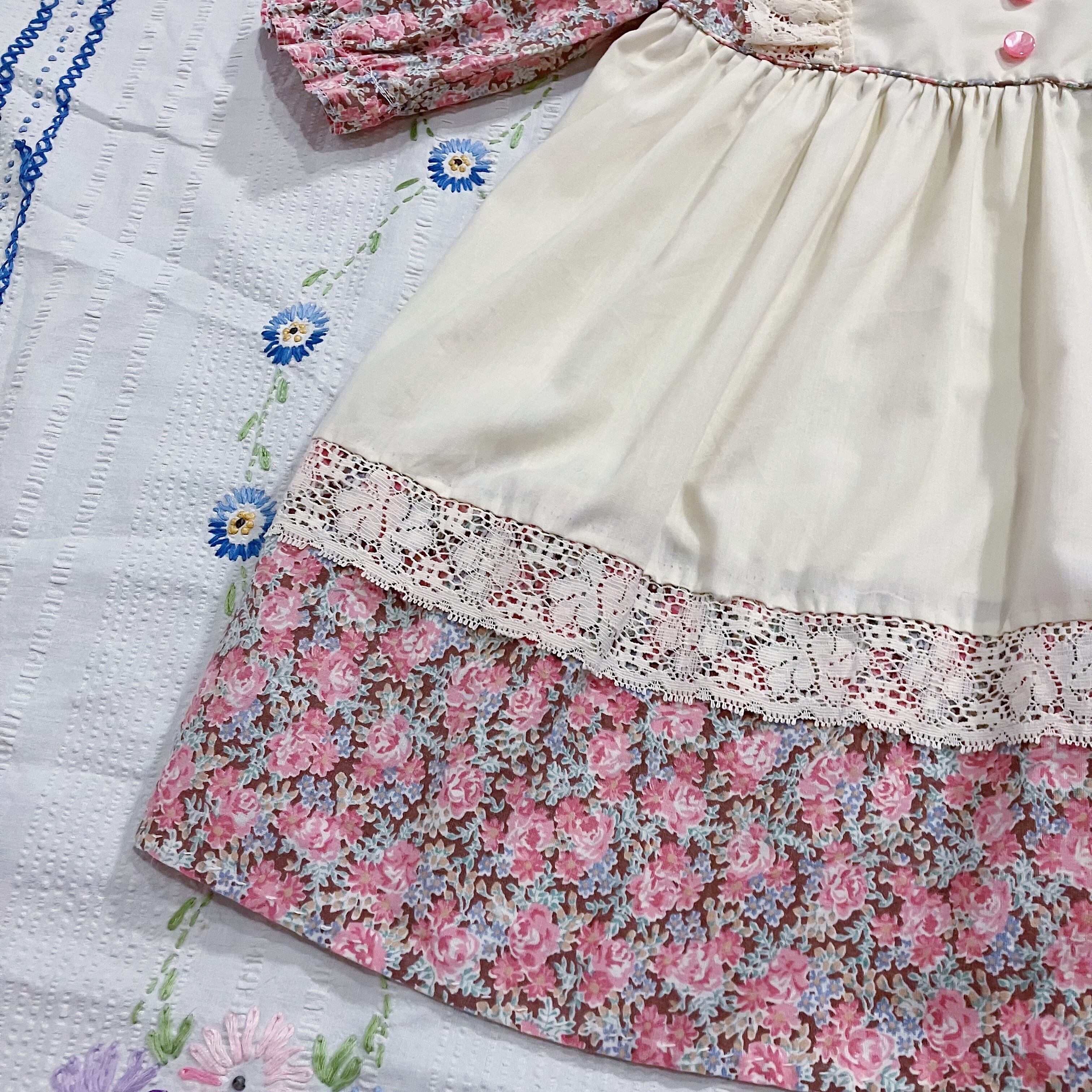 レースや、ピンクの花柄の生地がとってもガーリーで素敵です。