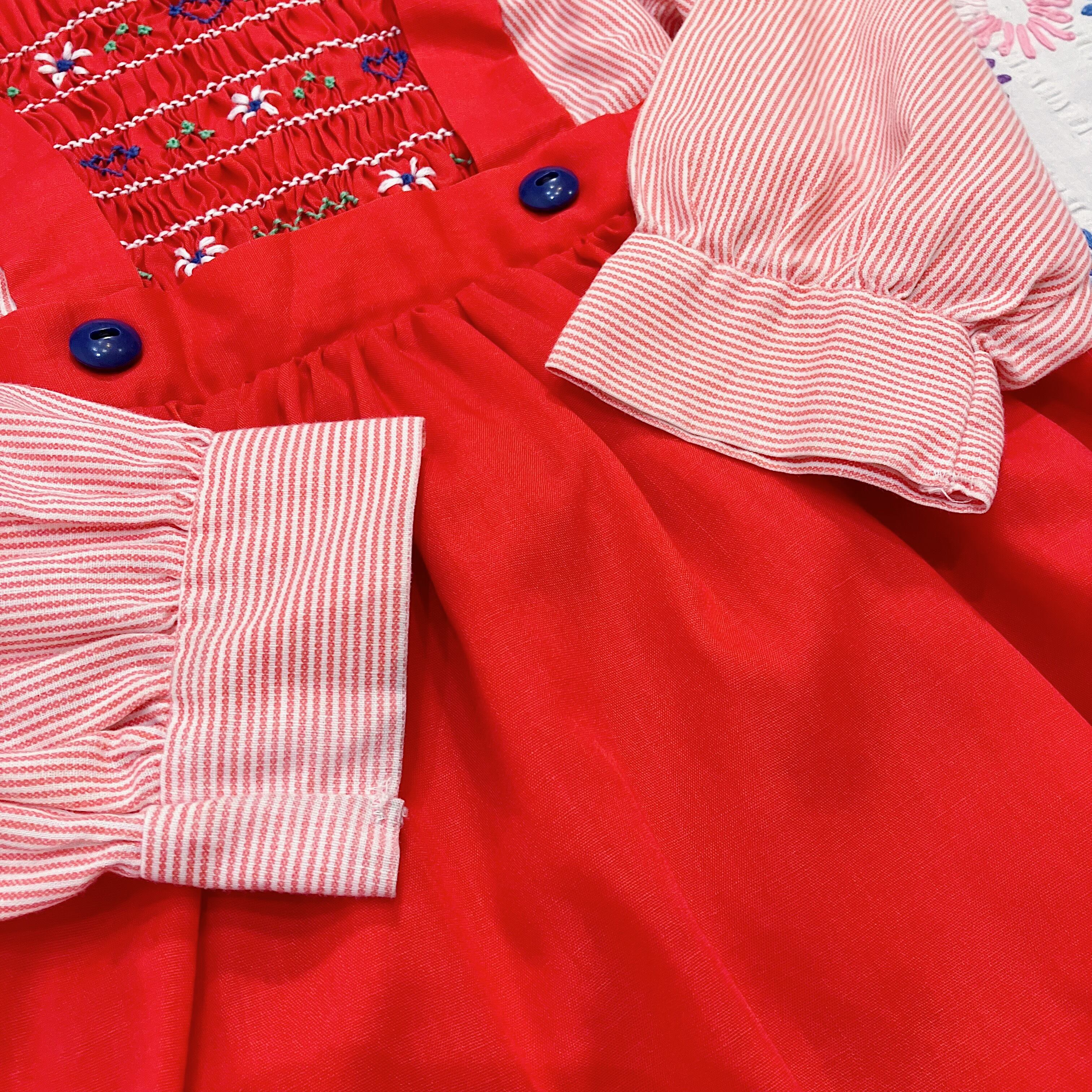 青いボタンや後ろの大きなリボンもポイントになっていてとても素敵です。