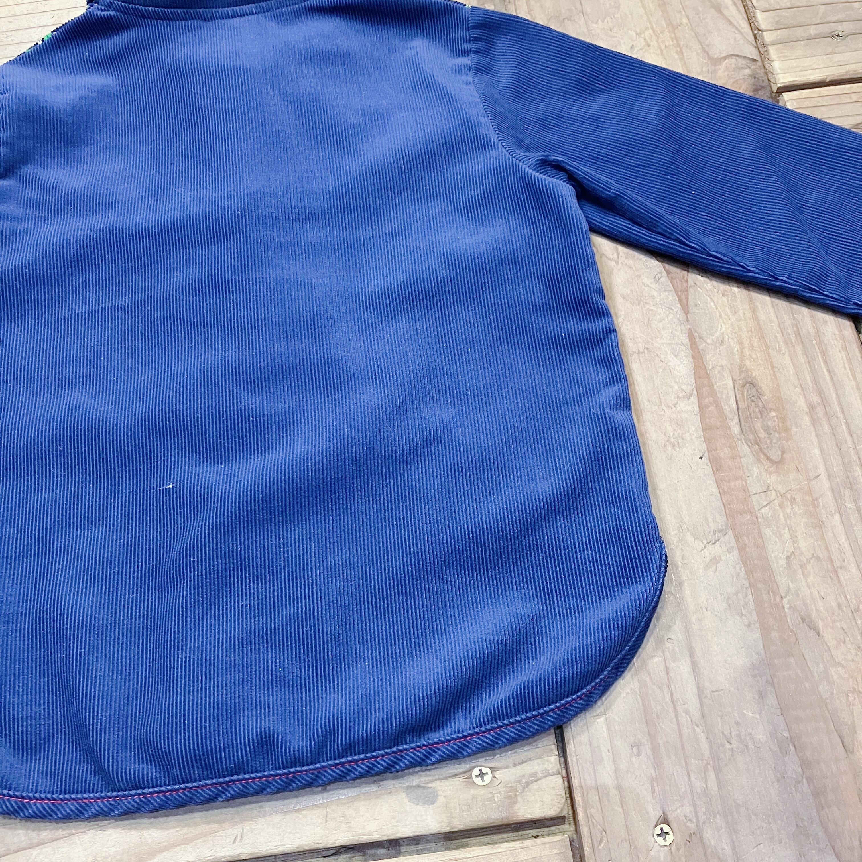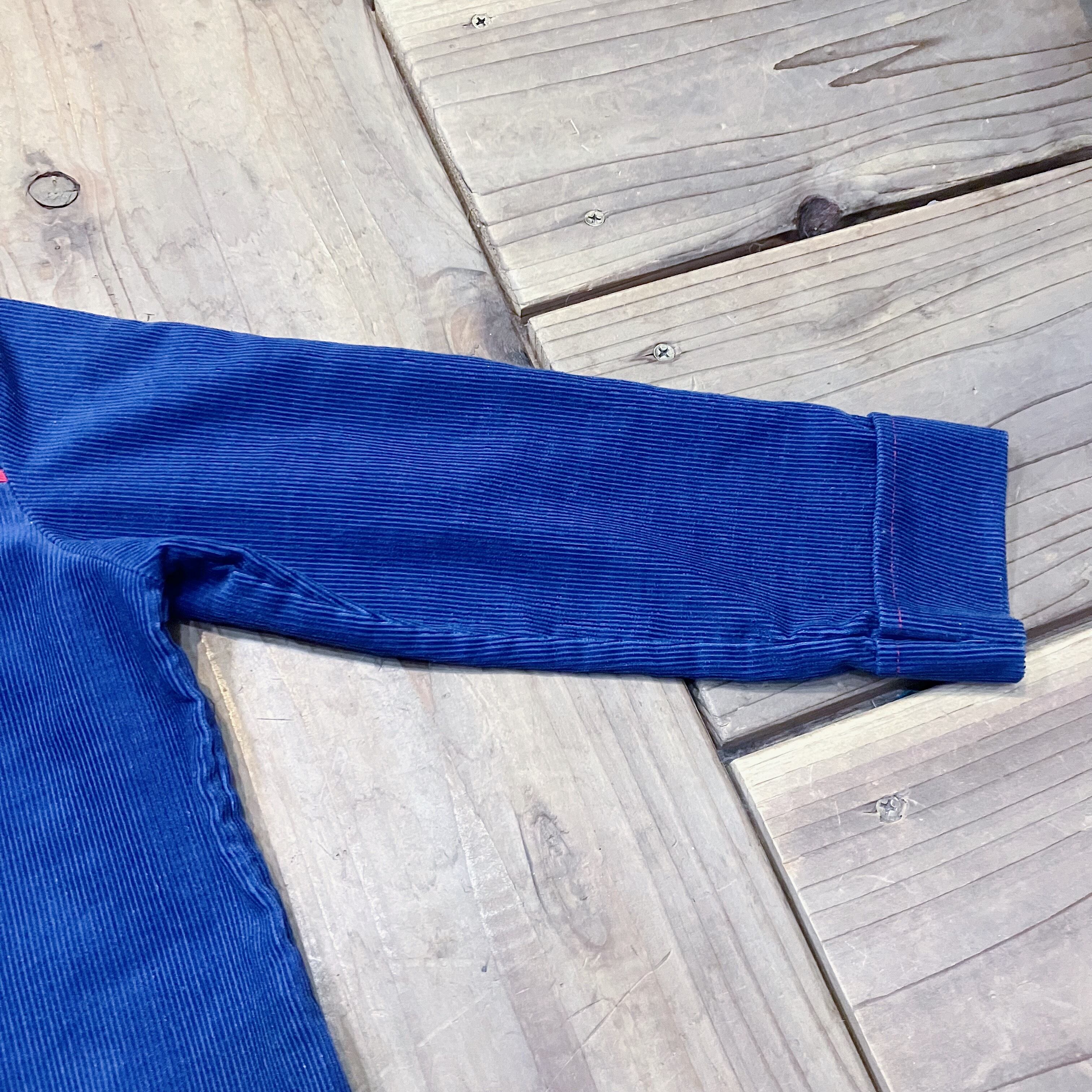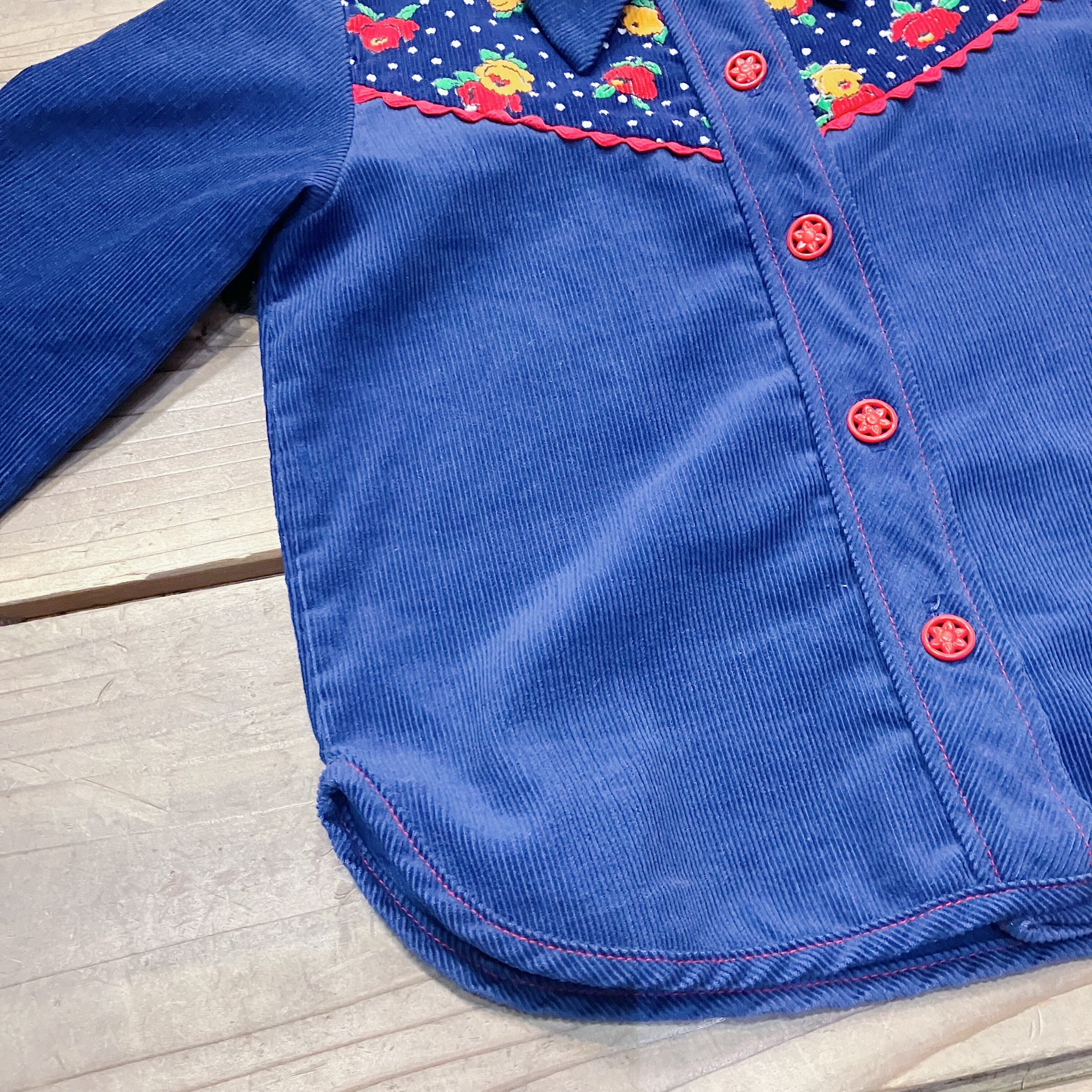 【size100-110】70s navy flower print corduroy long sleeve shirt