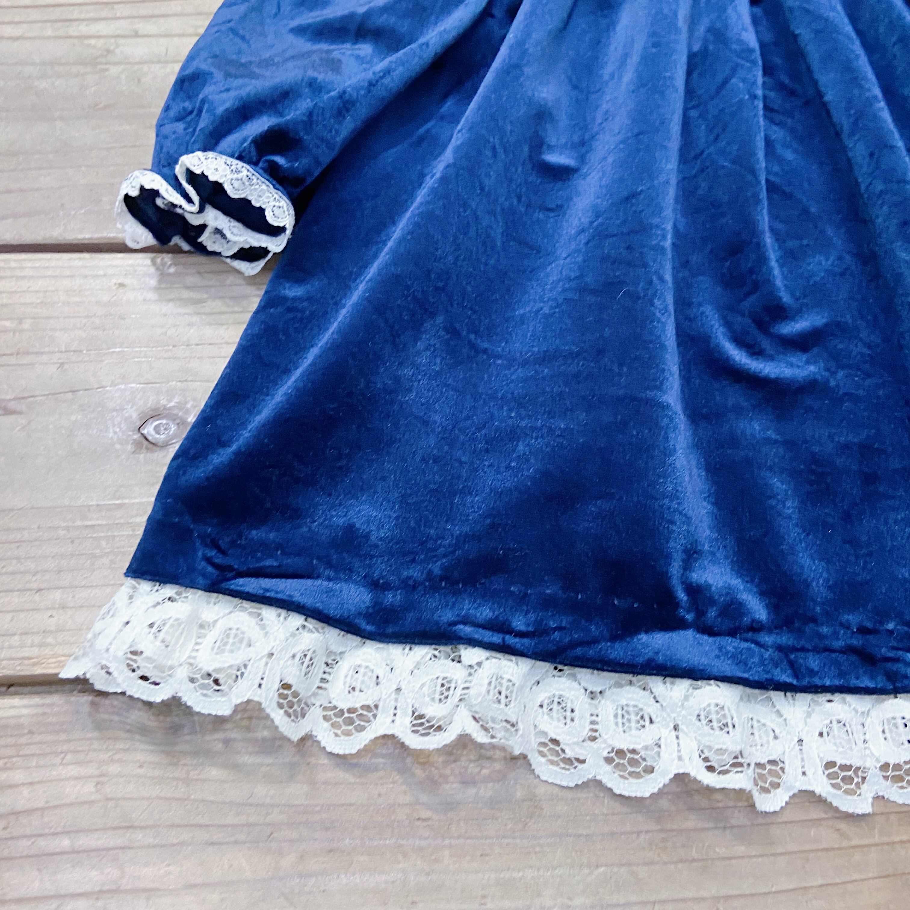 【size100-110】80s Navy velours race dress