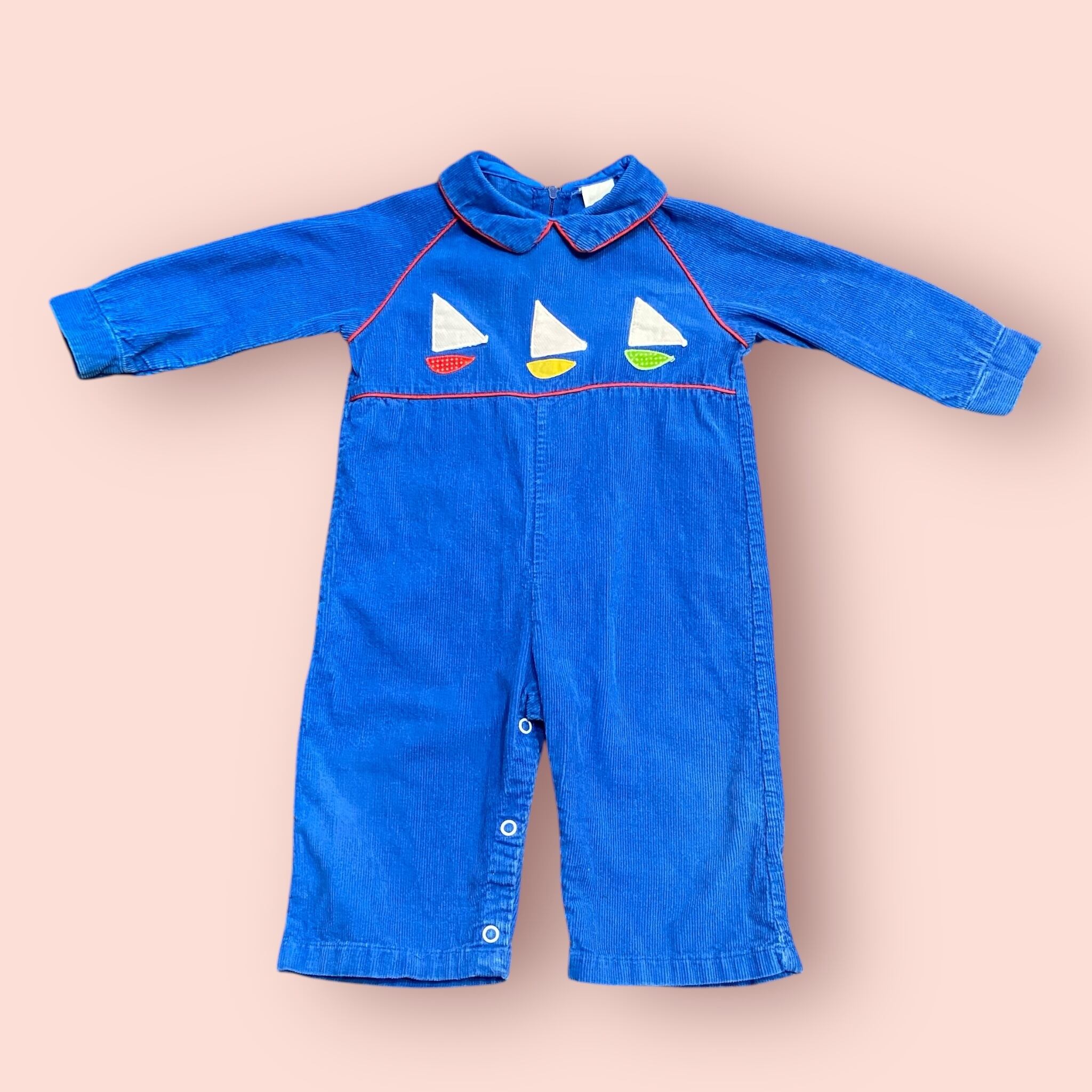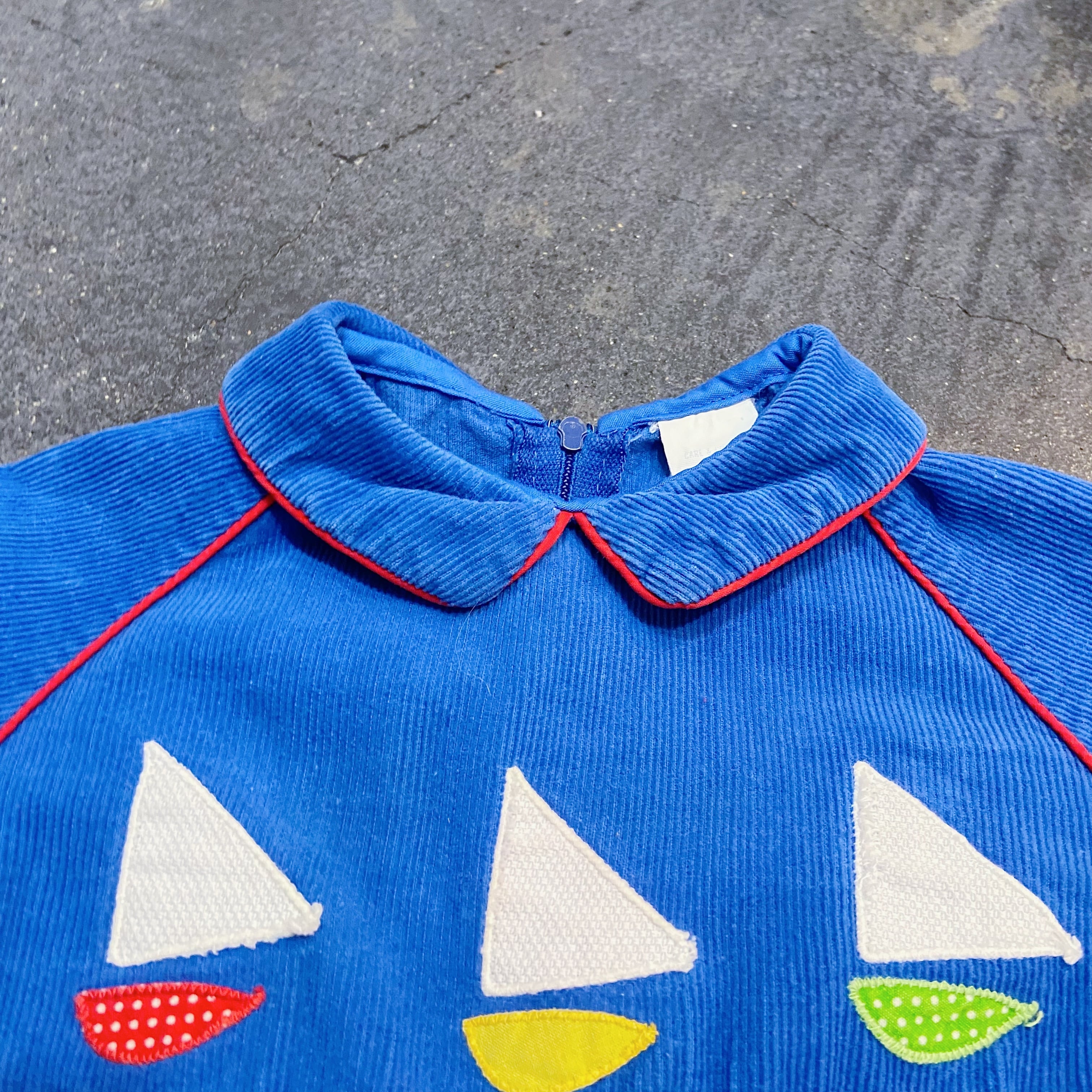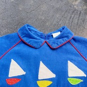 【size90】70s Blue corduroy boat patchwork jumpsuits(k128)