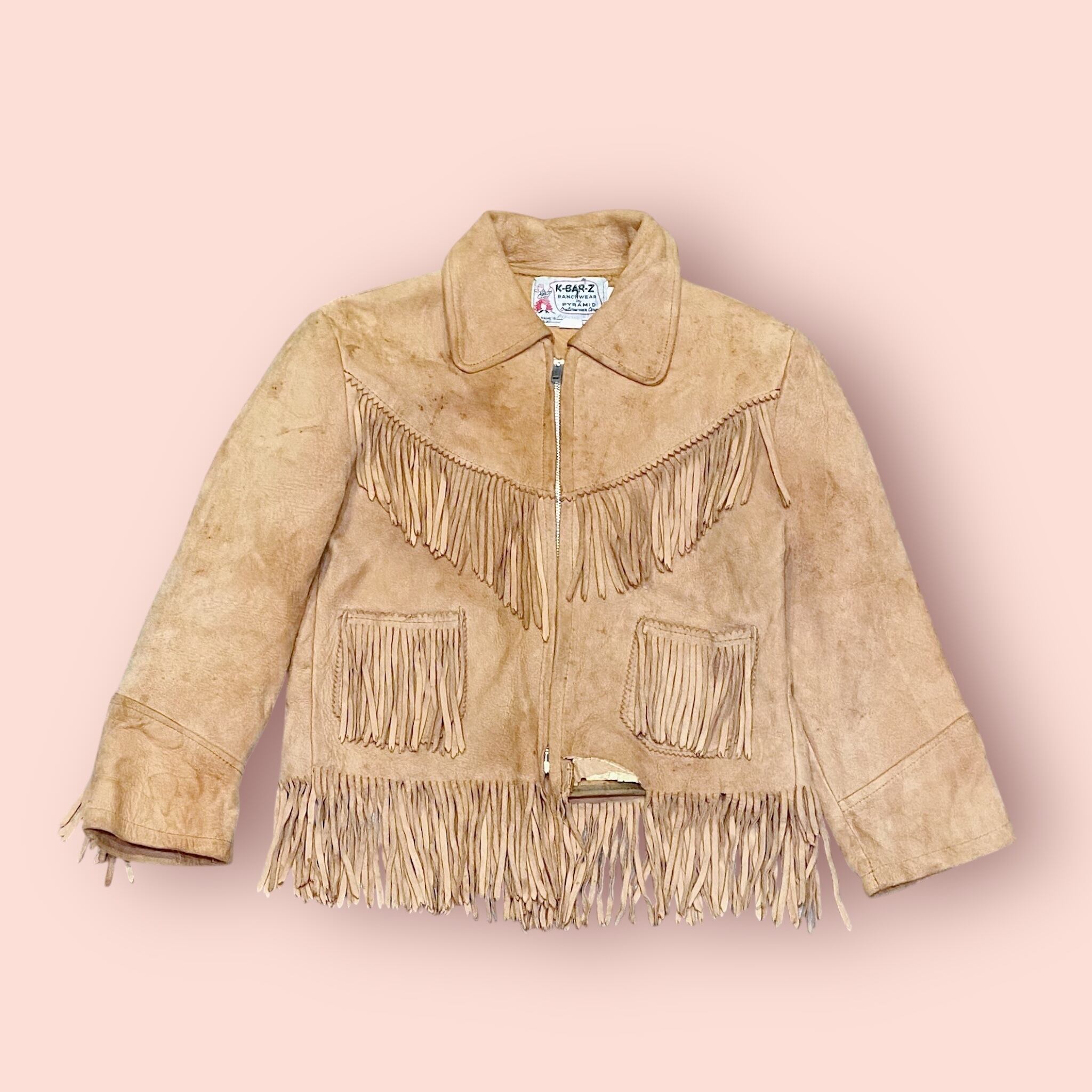 【size130-140】50s Brown leather fringe jacket